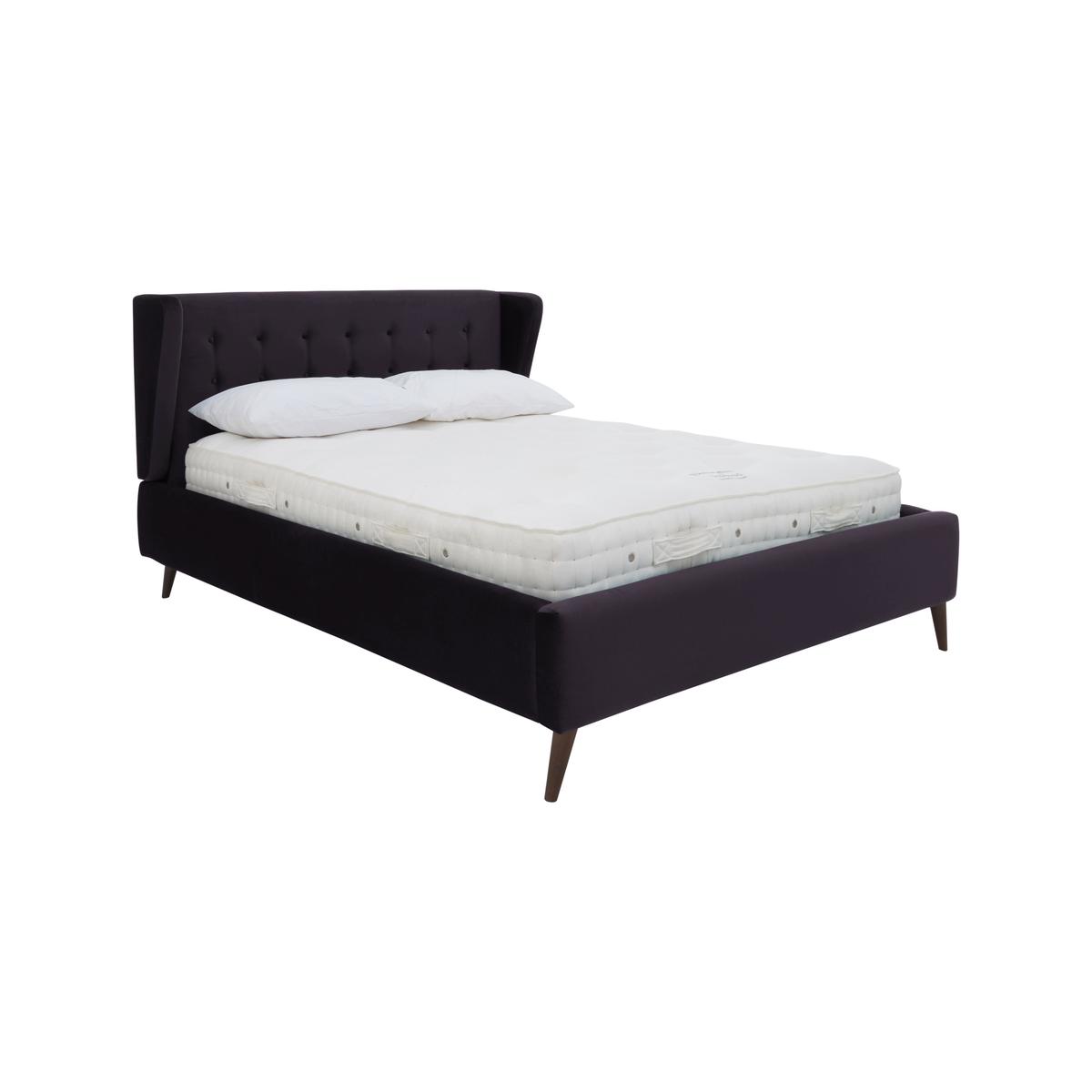 Mid-century upholstered bedroom furniture. Fabulous on trend winged and buttoned headboard. Huge choice of fabric styles and colours. Fabulous bedroom style is yours with the rather retro and altogether fabulous Bilbao bed frame. Beautifully handcrafted to order in Britain, this on trend upholstered bed frame showcases a tall headboard with mid-century modern angular winged sides and two rows of understated buttoning. The headboard is neatly upholstered on both sides, a sign of true craftsmanship. The bed frame itself has higher than normal sides, designed to stylishly surround any standard type of mattress, and is set on tapered legs. Choose from a huge range of smooth, plush and textured fabrics in a glorious selection of colours. As well as being gorgeous to look at it, this bed frame is a fabulous foundation for a great night’s sleep thanks to its sturdy construction. Underpinned by a strong steel frame, it has beech slats which are pre-assembled for your convenience. Available in double, king and super king bed sizes, the Bilbao bed frame is part of the Bilbao range of bedroom furniture. A Furniture Village exclusive. Please note: As Bilbao bedroom furniture is handmade, it is to be expected that measurements may be up to 3 cm less or more than the stated dimensions. Mattress shown is not included.