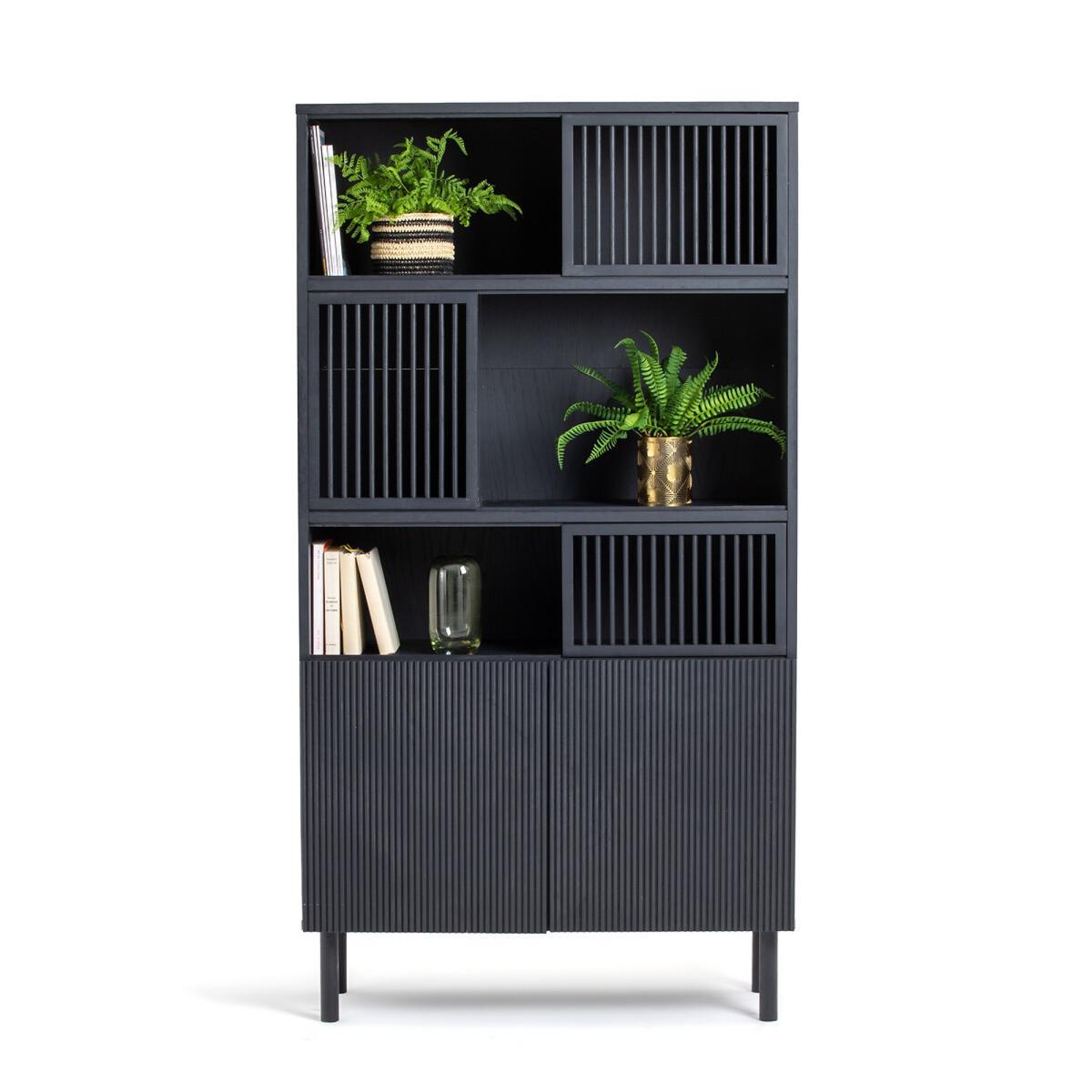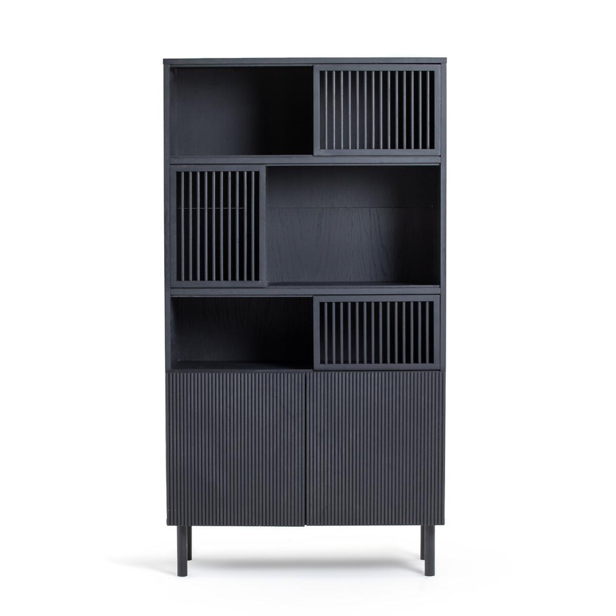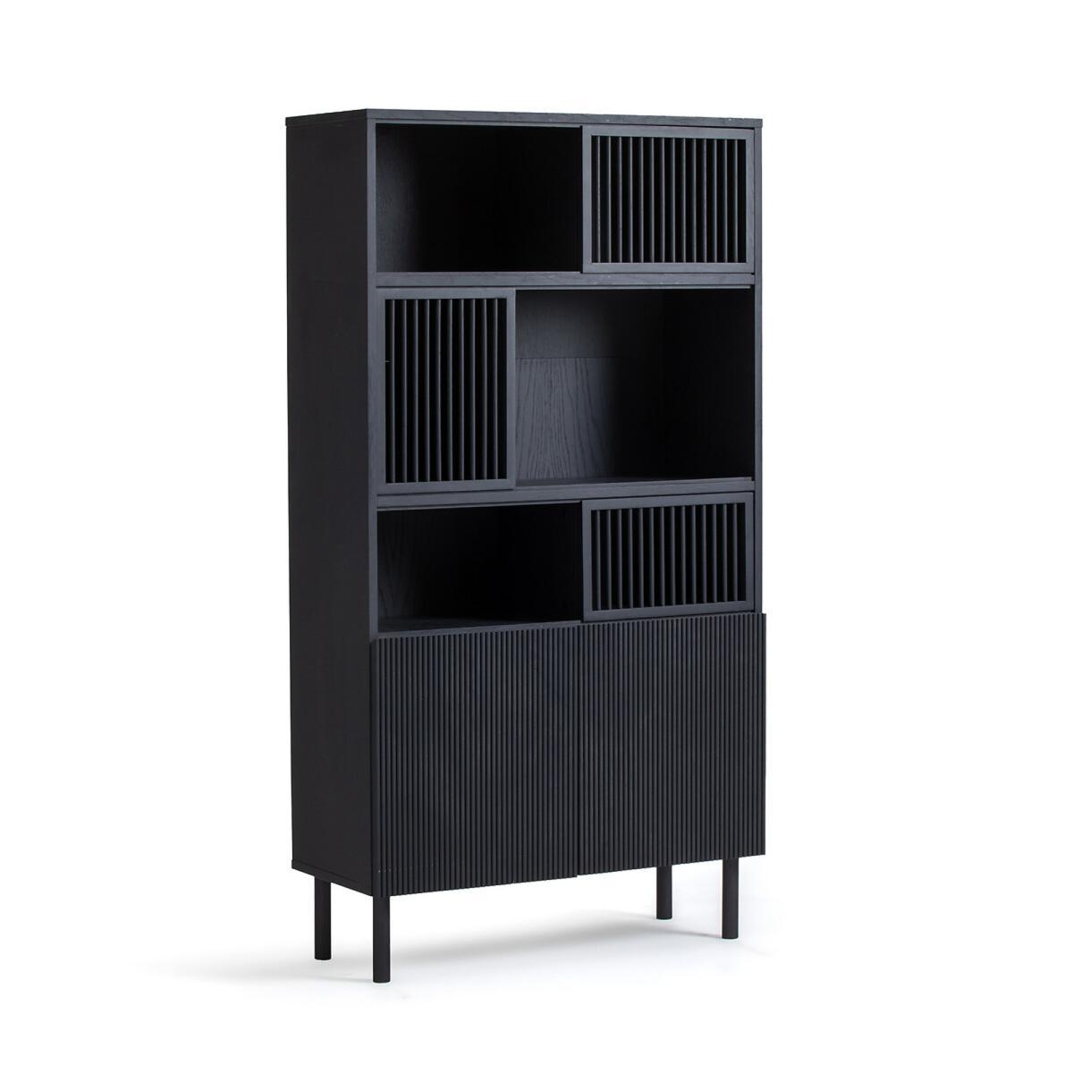 The Bilbao bookcase cabinet. This contemporary style bookcase has graphic lines and solid oak fronts. Very functional, it is characterised by its numerous storage spaces. Designed by La Redoute Interiors.