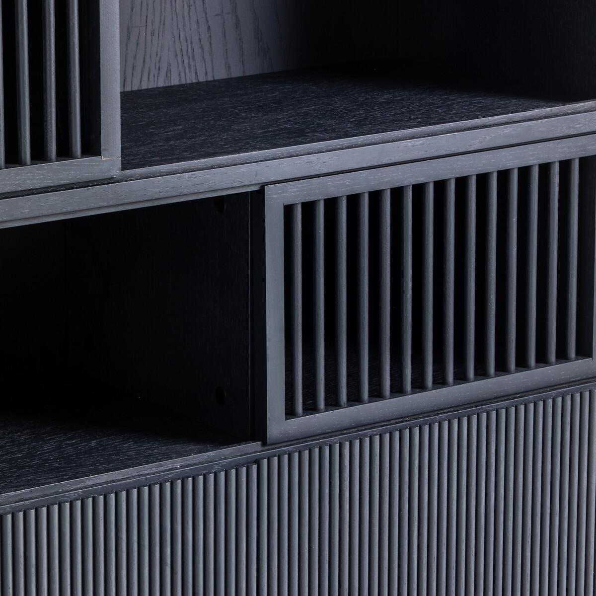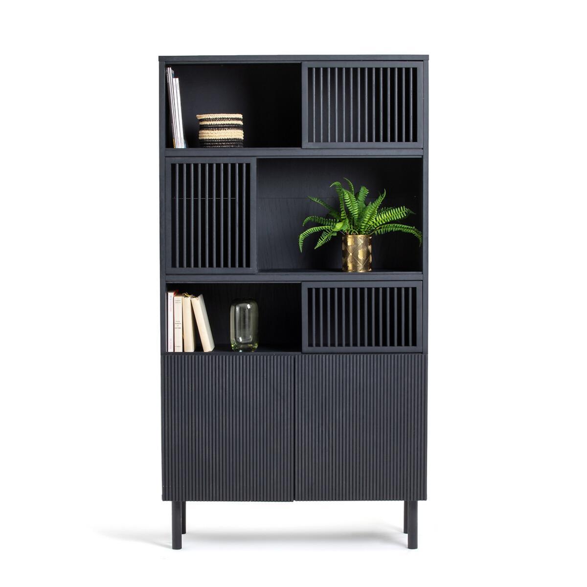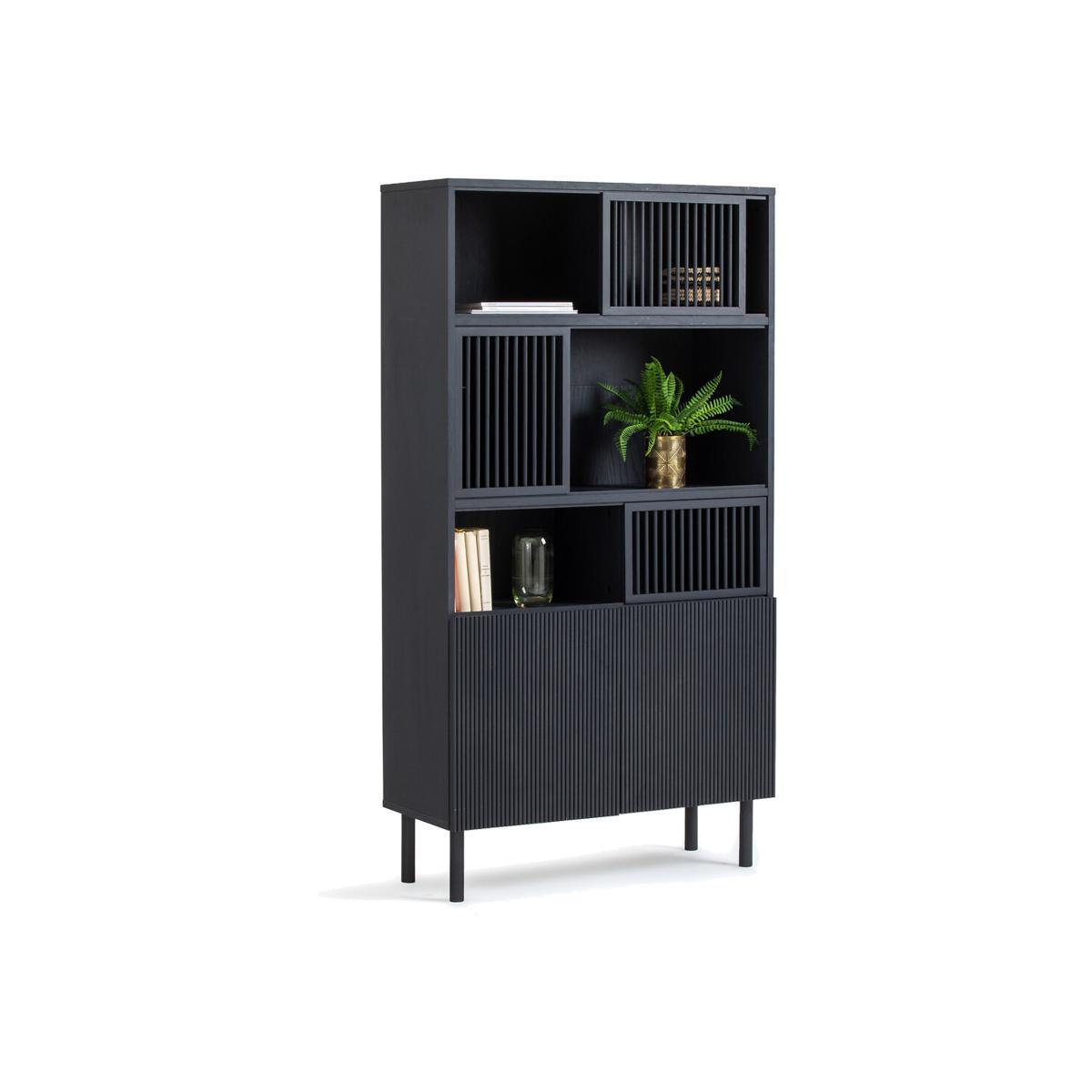 The Bilbao bookcase cabinet. This contemporary style bookcase has graphic lines and solid oak fronts. Very functional, it is characterised by its numerous storage spaces. Designed by La Redoute Interiors.