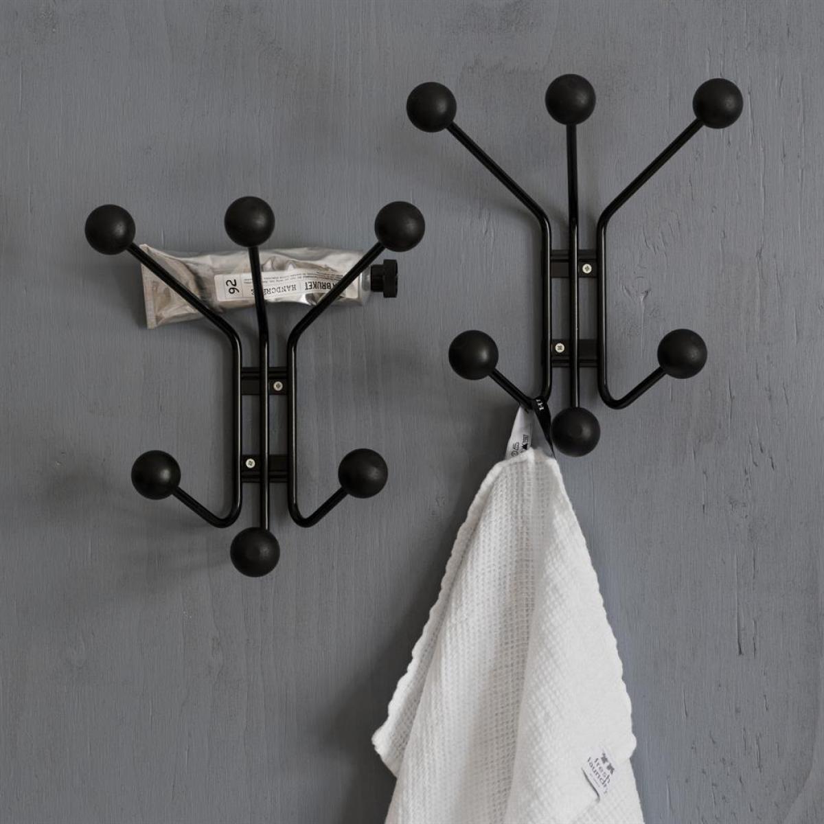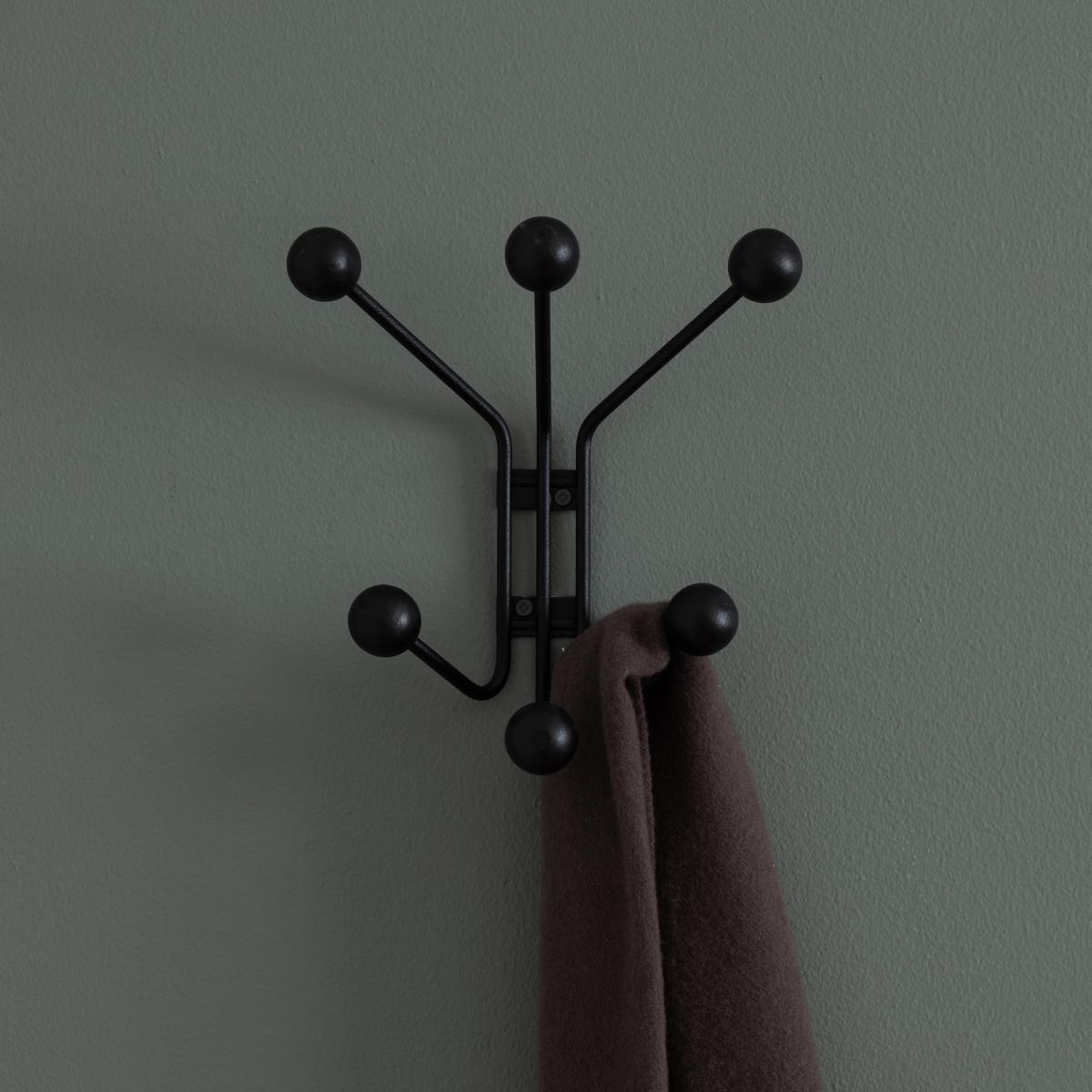 A metal coat hanger with six wooden nobs made in Sweden with love by the people at Maze Interior. It's a functional and decorative hook which is suitable for small spaces.