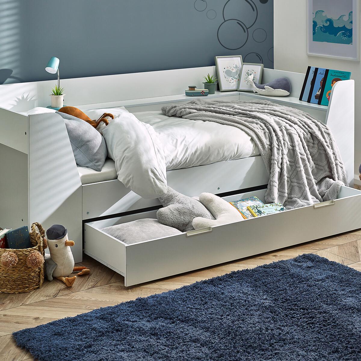 Offering a modern look, the Billie Daybed provides the perfect blend of style and functionality to any kid's bedroom. Featuring a large pull-out drawer with two embedded handles and a shelving unit on the top, ideal for storing and organising key essentials. Product details• Large pull-out drawer• Wraparound shelf around the sleeping space, ideal for storage and organising essentials• Assembly required• Fixings included• Max weight capacity - 14 stone• Compatible with UK Single 90 x 190 cm mattresses• Mattress not included• Maximum mattress height - 23cm• 12-month product guarantee. Composition - 90% Particleboard, 10% Metal LVLOverall Dimensions 232 cm x 113.5 cm x 79.5 cm , Weight - 81.5 KGPackage Dimensions:Parcel 1 Packaged Dimensions - 116 cm x 66 cm x 12 cm, Weight 33 KGParcel 2 Packaged Dimensions - 201 cm x 46 cm x 10 cm, Weight 27 KGParcel 3 Packaged Dimensions - 179 cm x 51 cm x 10 cm, Weight 28 KGPlease note: this product cannot be be delivered to all Offshore Islands Northern Ireland or Republic of Ireland. This product will be dispatched by one of our trusted suppliers. You’ll be contacted by their selected courier about your delivery.