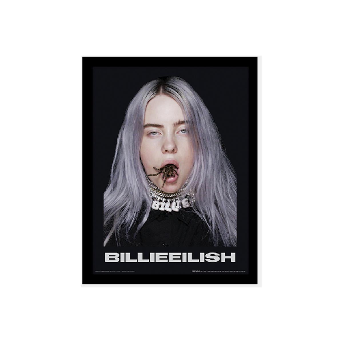 30x40cm Framed Print, in elegant black MDF frame with hanging fixings on the back for displaying this great Billie Eilish print anywhere around your home.