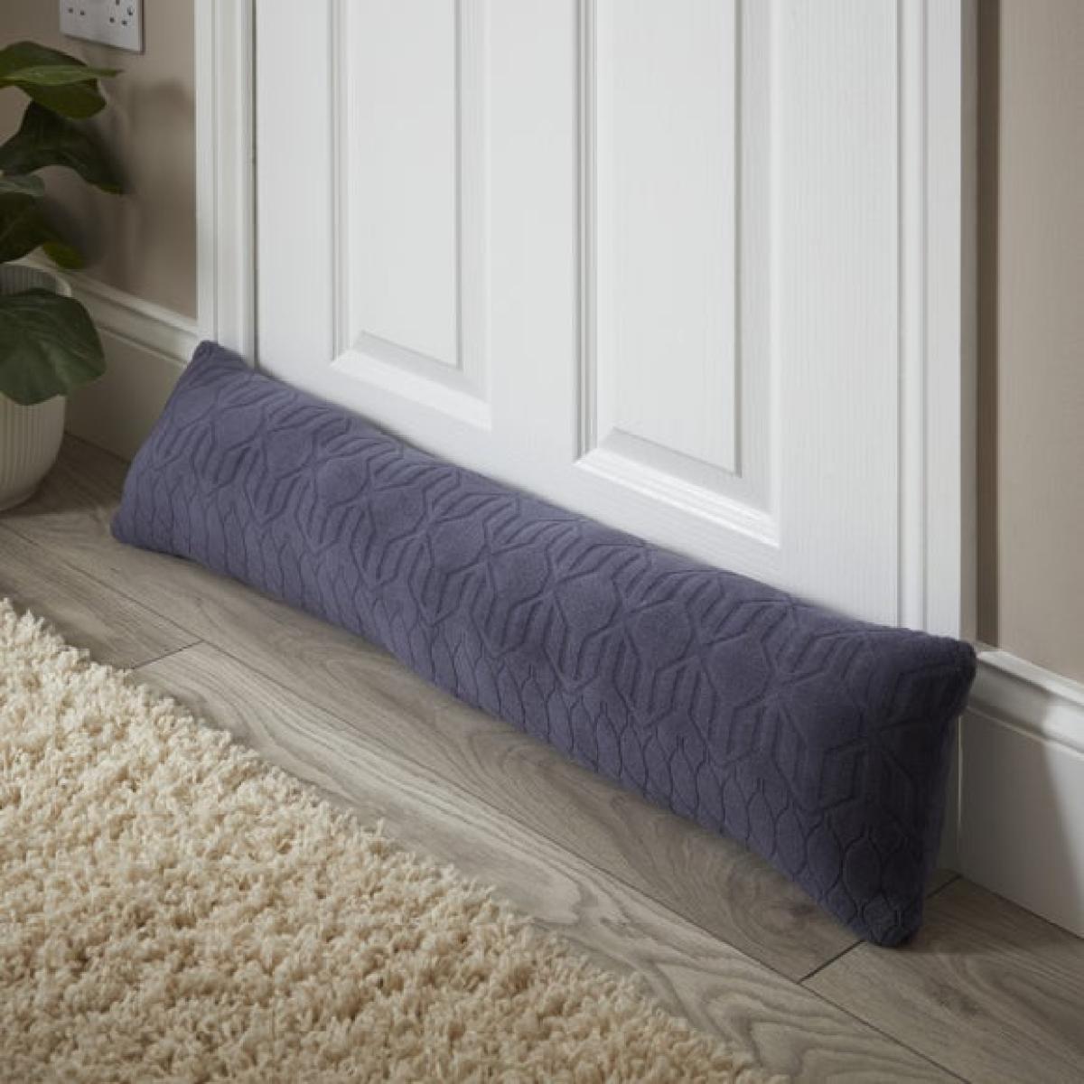 * Great for a cosy home * Textured geometric design * Rich navy blue colour * Super soft fabric Keep chills at bay with the Billie Embossed Draught Excluder, perfect for creating a cosy home. Its rich navy blue colour and textured geometric design bring a stylish touch to your doorway. Made from super soft fabric, it not only looks inviting but also helps keep rooms warm and comfortable.