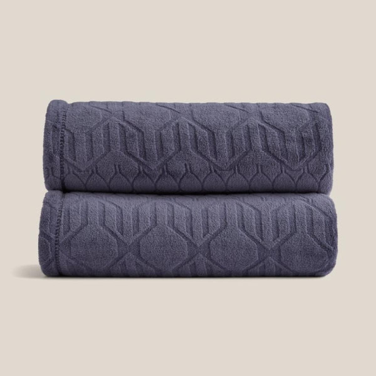 * Embossed geometric pattern * Available in two sizes * Choice of colours * Super soft fleece Add effortless style and comfort to your home with the Billie Geometric Fleece Throw, available in Dove Grey or Navy Blue. Made from ultra-soft 100% polyester, this cosy throw offers breathable warmth all year round. The plush texture and reinforced 1-inch hem make it as durable as it is inviting. Perfect for lounging, layering or travelling, its geometric design fits seamlessly into any space. Easy to care for - simply machine wash and tumble dry on a low heat to keep it looking and feeling its best.