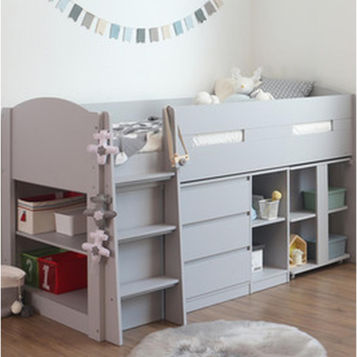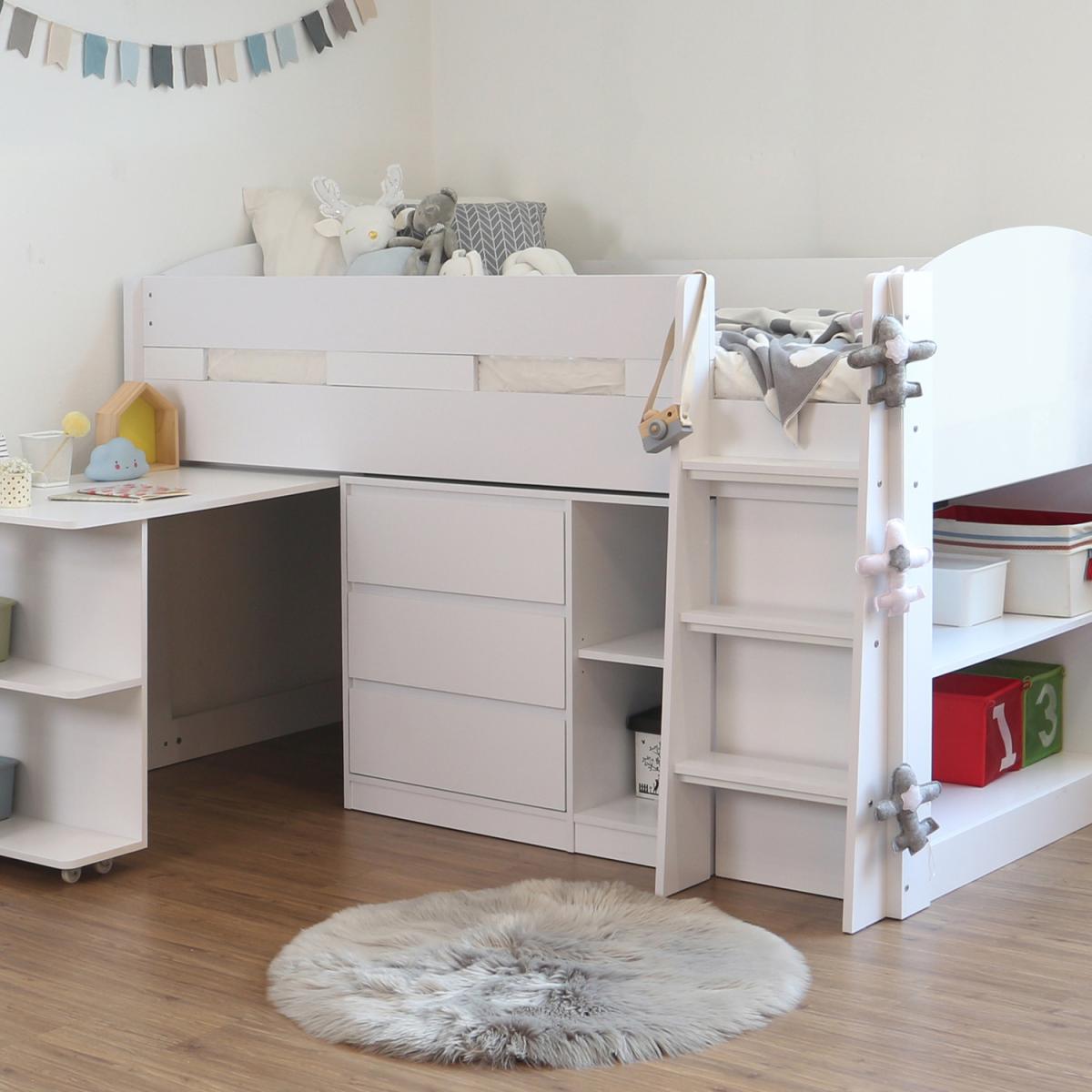 The Billie mid sleeper has handy under bed storage and a pull out desk, offering copious storage for a room with limited space.
