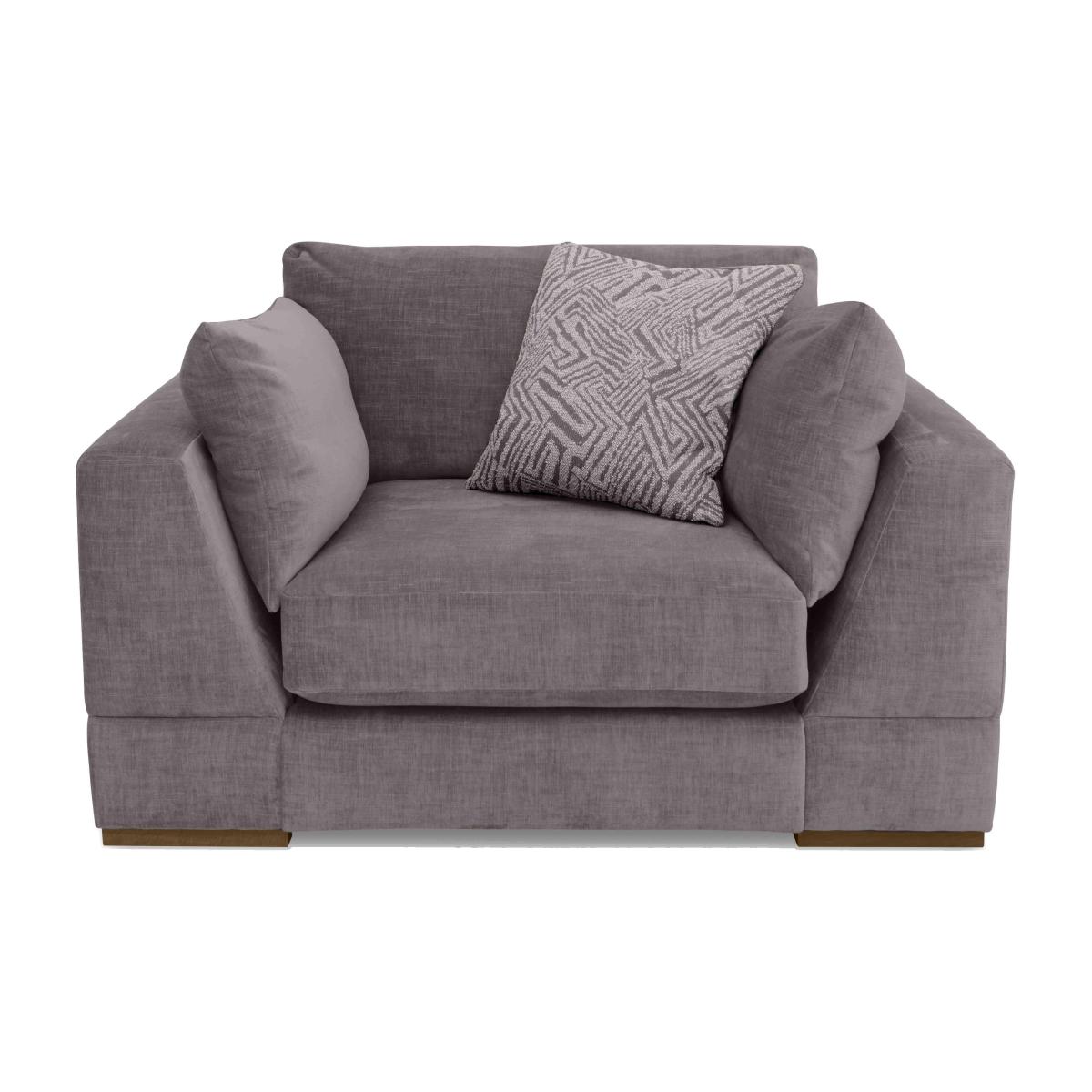With ultra-wide arms and sleek silhouettes, the striking sofas and armchair in our fantastic-value Billie collection showcase a bold and modern look that translates into superb comfort. Take a seat and you'll quickly appreciate the sprung seats with Duo Flex cushioning that offers ultimate support for ultimate relaxation. Arm bolsters and scatter cushions – all included as standard – are feather-filled for more than a touch of softness. And reversible seat and back cushions ensure that Billie's exceptionally high level of comfort lasts and lasts. Available in a choice of sophisticated colours, the Billie collection is handmade in the UK exclusively for Furniture Village. Oversized armchair? Small sofa? Whatever you call it, this snuggler is this season’s most wanted piece. Ultra-comfy and ultra-stylish, it’s handmade and only at Furniture Village. Why you'll love it Bold modern style at a great-value price. A distinctive look that’s all about comfort. Relax on exceptionally wide arms and feather-filled bolster cushions. Sprung seats promise even weight distribution and incredible body support. Choice of upholstery colours and wood feet finishes. Comes with a feather-filled scatter cushion in a coordinating fabric. Reversible seat and back cushions for longer sofa life. Built to last with an exceptionally strong frame. Handmade in the UK – and only at Furniture Village. This snuggler is part of our Billie range. What you need to know Medium comfort level. Seat suspension: serpentine springs. Seat cushioning: Duo Flex foam. Back suspension: elasticated webbing. Back cushioning: blown fibre. Arm bolsters: feather. Scatter cushions: feather. Removable back, arms and feet. Plump seat, back and arm cushioning daily for maximum comfort. Flattening and shading of heavy wear areas on pile fabrics is unavoidable. Clean regularly using a soft brush or vacuum with the curtain attachment. Deal with any spills promptly. Professional cleaning advised for oil- and grease-based stains. Please read our upholstery care guide for more advice.