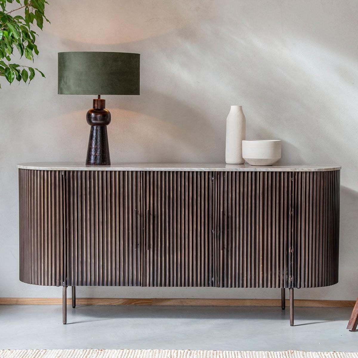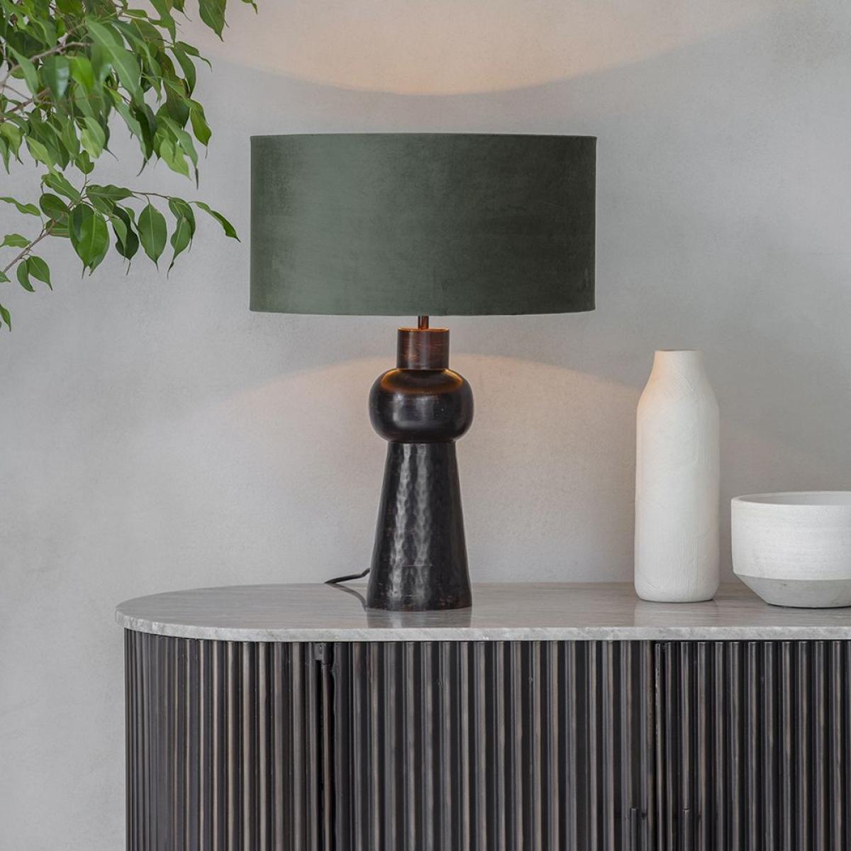 Our Billie Table Lamp is a sculptural lamp base that brings both function and form to your home. Perfect for use in a living room, dining area, hallway, landing or bedroom, this striking table lamp has a strong distinctive shape that works as both lighting and an ornamental object for decorative design. Use to create a layered lighting effect within your home or to bring sculptural shape to tabletops and surfaces. Adding impact to a sideboard, dresser, tabletop or shelving, its monochrome look has a hand-crafted feel while the iron design is durable and hardwearing. In line with the trend for using sculptural shapes as ornamental design, the Billie Table Lamp casts a warm pool of light for ambient lighting when relaxing, reading or entertaining at home. Its rich, dark brown tones have an earthy quality that sits well with a moss green shade (not included), organic wooden furniture and neutral colour schemes. This table lamp sits beautifully in any décor and can be used to add decorative interest to surfaces in any room. Lampshade is for illustration purposes only and is not included.