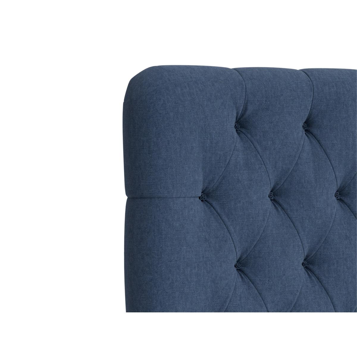 We achieved a little faded grandeur for this gorgeous headboard by replacing traditional buttons for discs of fabric and by keeping the headboard fabric slightly relaxed. Gorgeous.