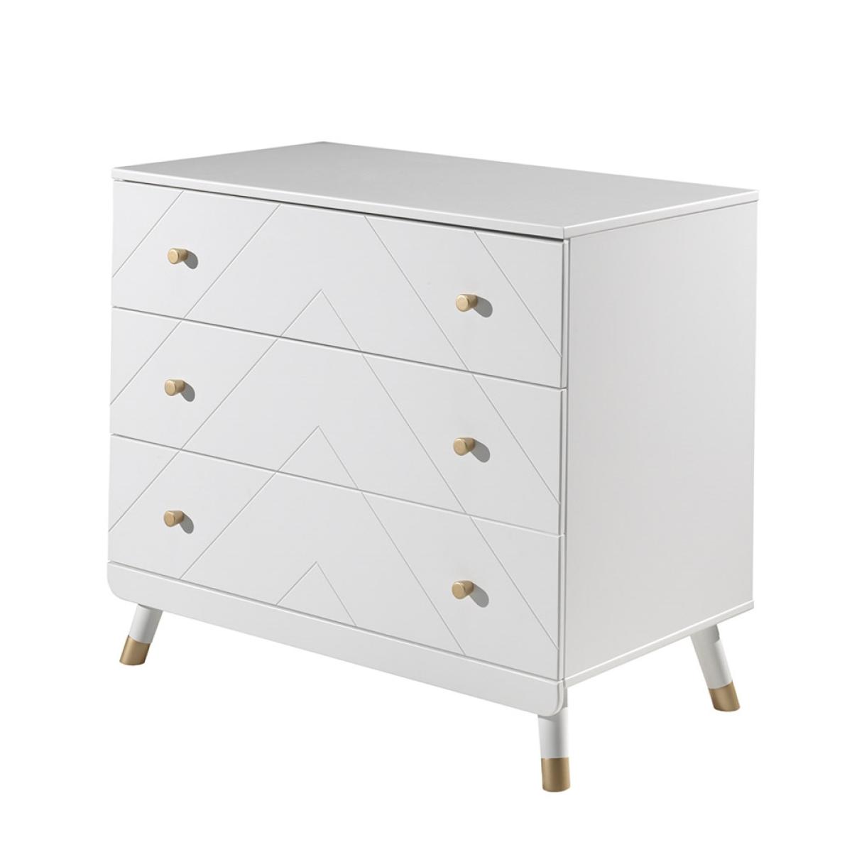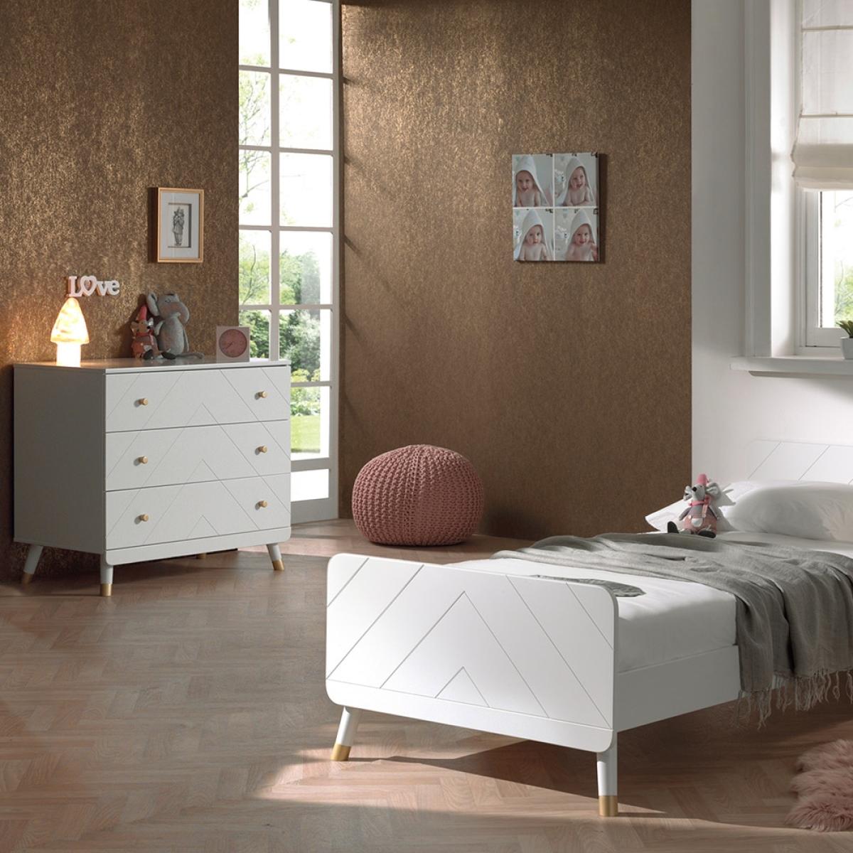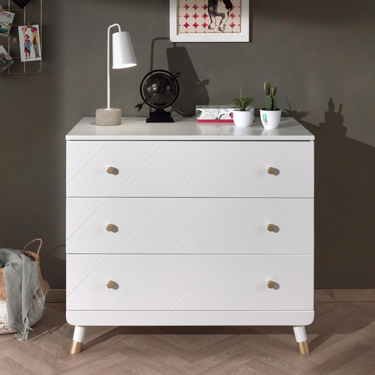 Simple yet stylish, the Billy Chest of Drawers will be the perfect finishing touch to your kiddies bedroom. Boasting three drawers, there will be plenty of space to house your youngster's clothes. With a gorgeous chevron design on the front and gold-tipped feet and handles, this dresser will have no trouble suiting your interior style and will make the move from child's room to teen room an easy task.