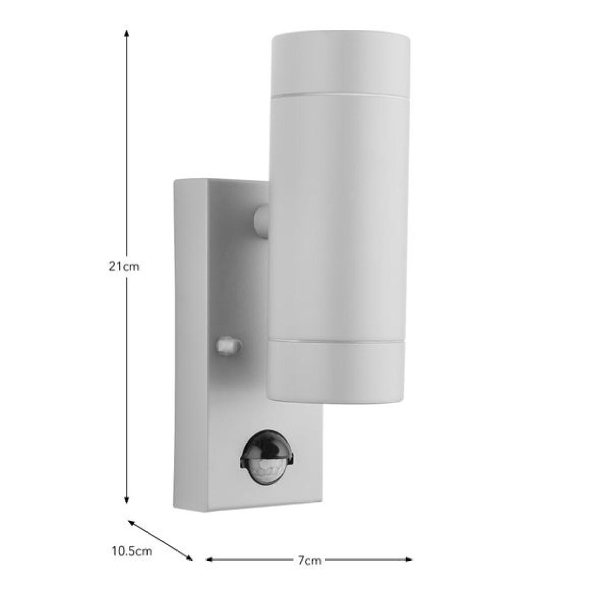 * Sleek, Modern Design * PIR Sensor - Motion Detector * Weather Resistant & IP44 Rating * Made from Stainless Steel * Available in Multiple Colourways Brighten up your outdoors with the Billy Modern PIR Outdoor Wall Light. With its built-in PIR sensor, Billy lights up when it senses motion, giving you style and security in one smart package. Its up-and-down light design adds a stunning glow to your walls, creating a gorgeous ambience at night. Weather-resistant with an IP44 rating and compatible with 2 x GU10 bulbs, Billy is built to perform - rain or shine.