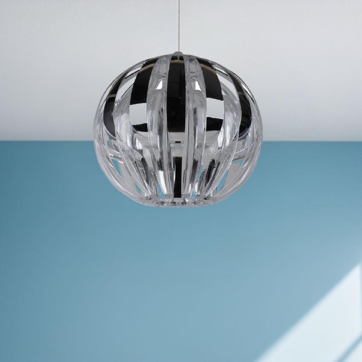 Contemporary pendant light shade boasting a polished chrome finish. A stunning addition to your home, this pendant light shade is part of the Bimber range from Pagazzi Lighting. Boasting a round shape, the piece is made up of alternating curved clear and chrome panels. This ball-shaped shade features an open bottom to allow easy access to the light bulb. It is an 'easy fit' non-electric pendant which can be fitted with ease to an existing bulb in lounges, hallways, bedrooms and dining rooms. Contemporary pendant light shade boasting a polished chrome finish. A stunning addition to your home, this pendant light shade is part of the Bimber range from Pagazzi Lighting. Boasting a round shape, the piece is made up of alternating curved clear and chrome panels. This ball-shaped shade features an open bottom to allow easy access to the light bulb. It is an 'easy fit' non-electric pendant which can be fitted with ease to an existing bulb in lounges, hallways, bedrooms and dining rooms.