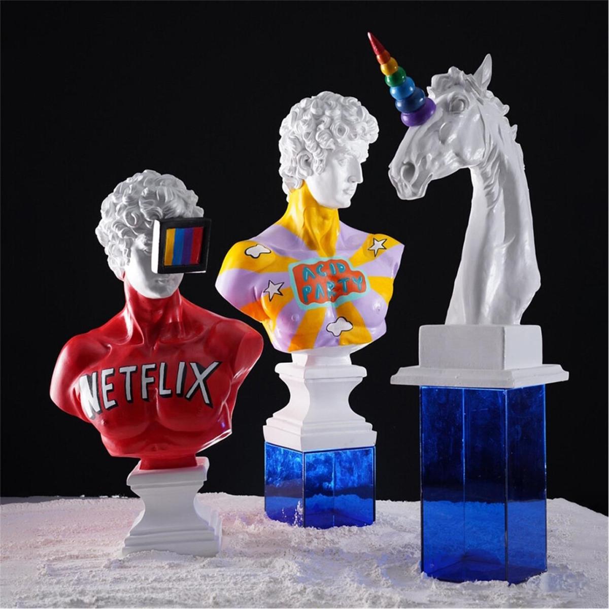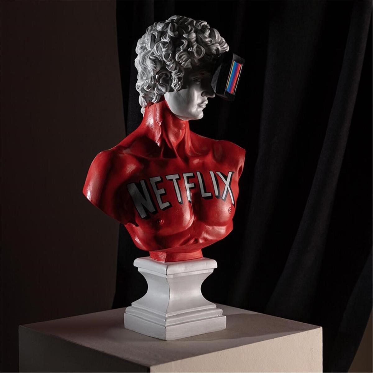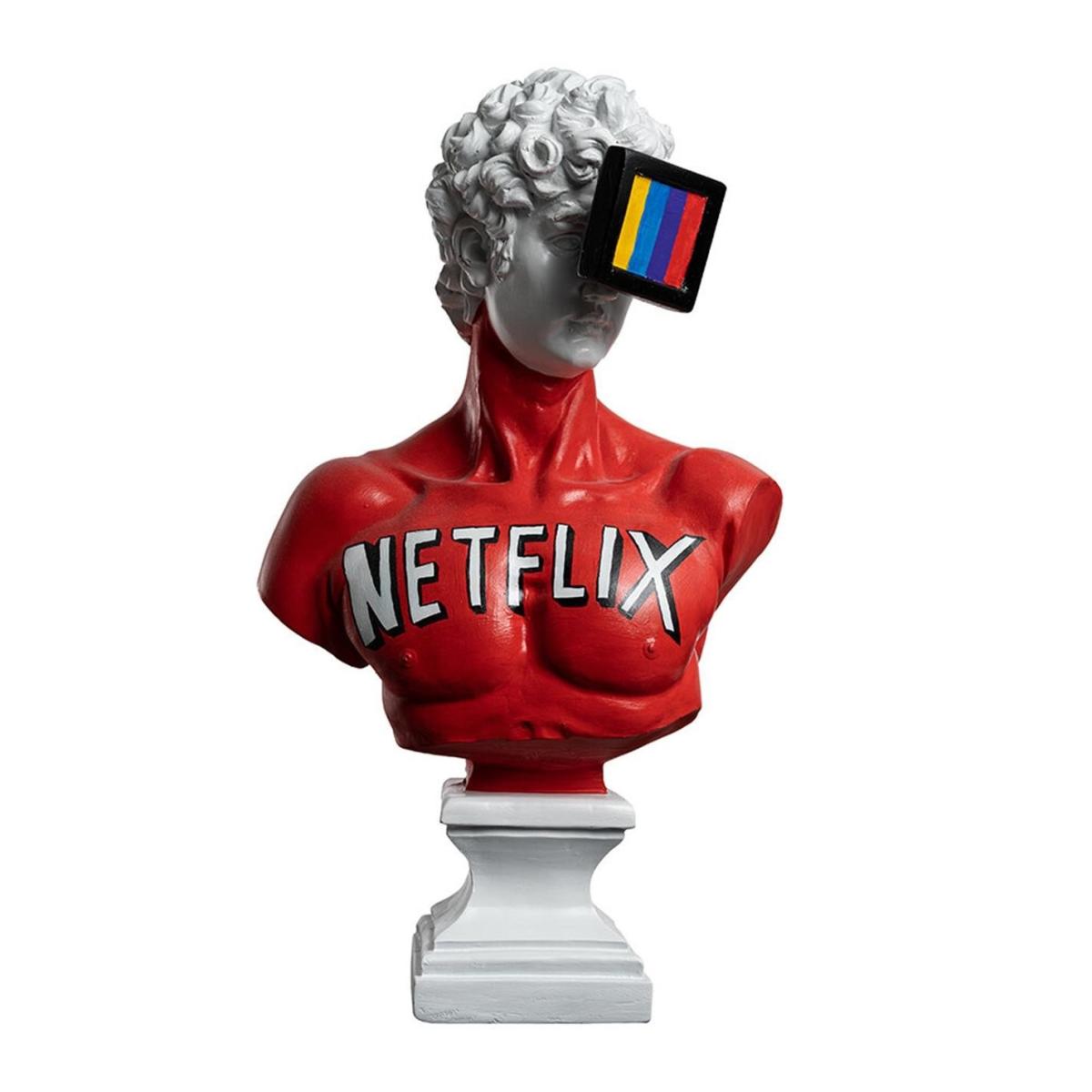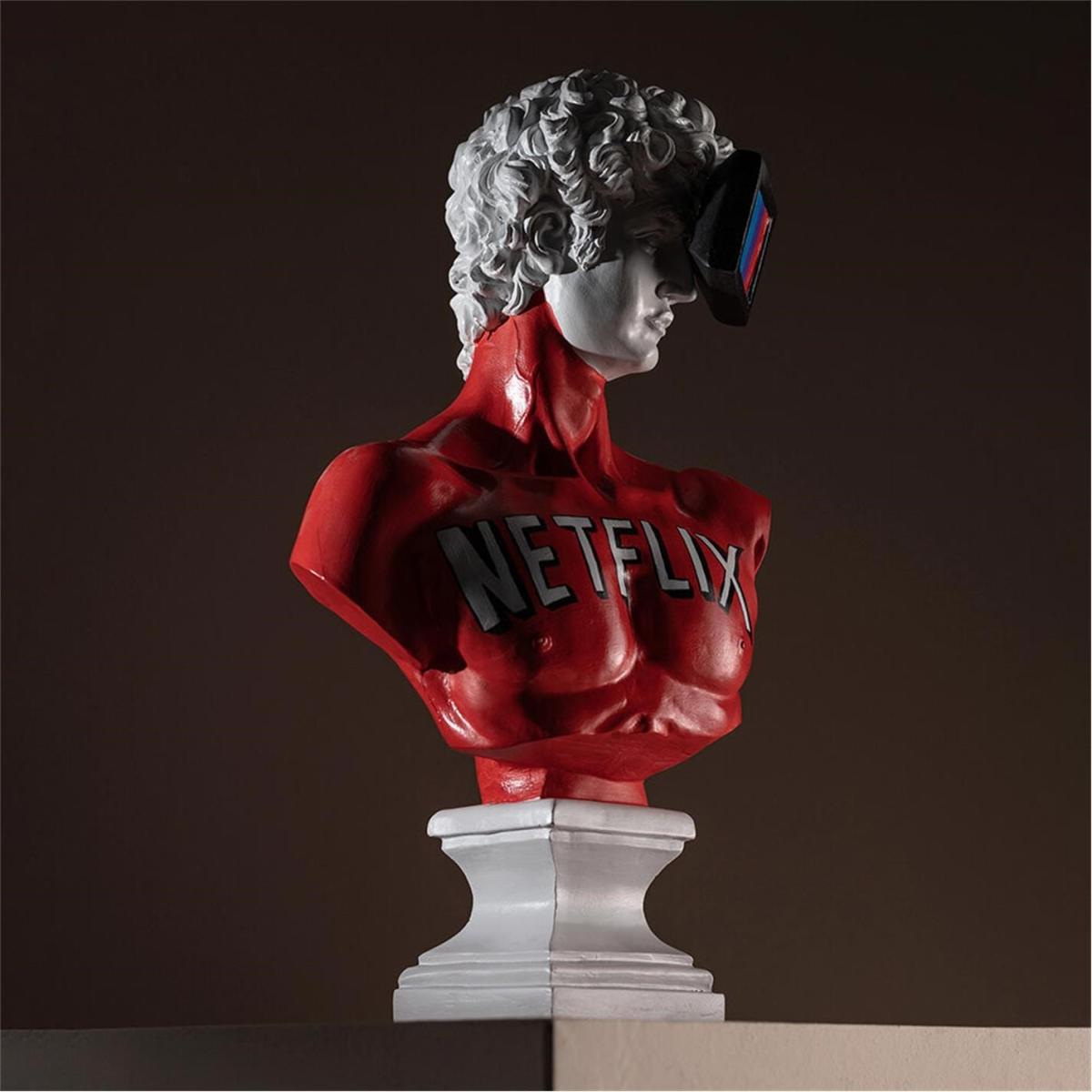 The binge watcher David sculpture is a bold statement piece that works particularly well in contemporary or eclectic interiors. I love its playful take on classical busts, combined with a pop culture twist thanks to the branded Netflix logo. It’s ideal for adding a touch of humour and personality to a living room, media zone, or entertainment space. Practical styling tips include placing it on a side table or pedestal where it can be showcased without competing with other artworks-pairing it with minimalist furniture will help it stand out. Also, consider lighting that highlights its sculptural details, especially if displayed in a well-lit, conversational area.