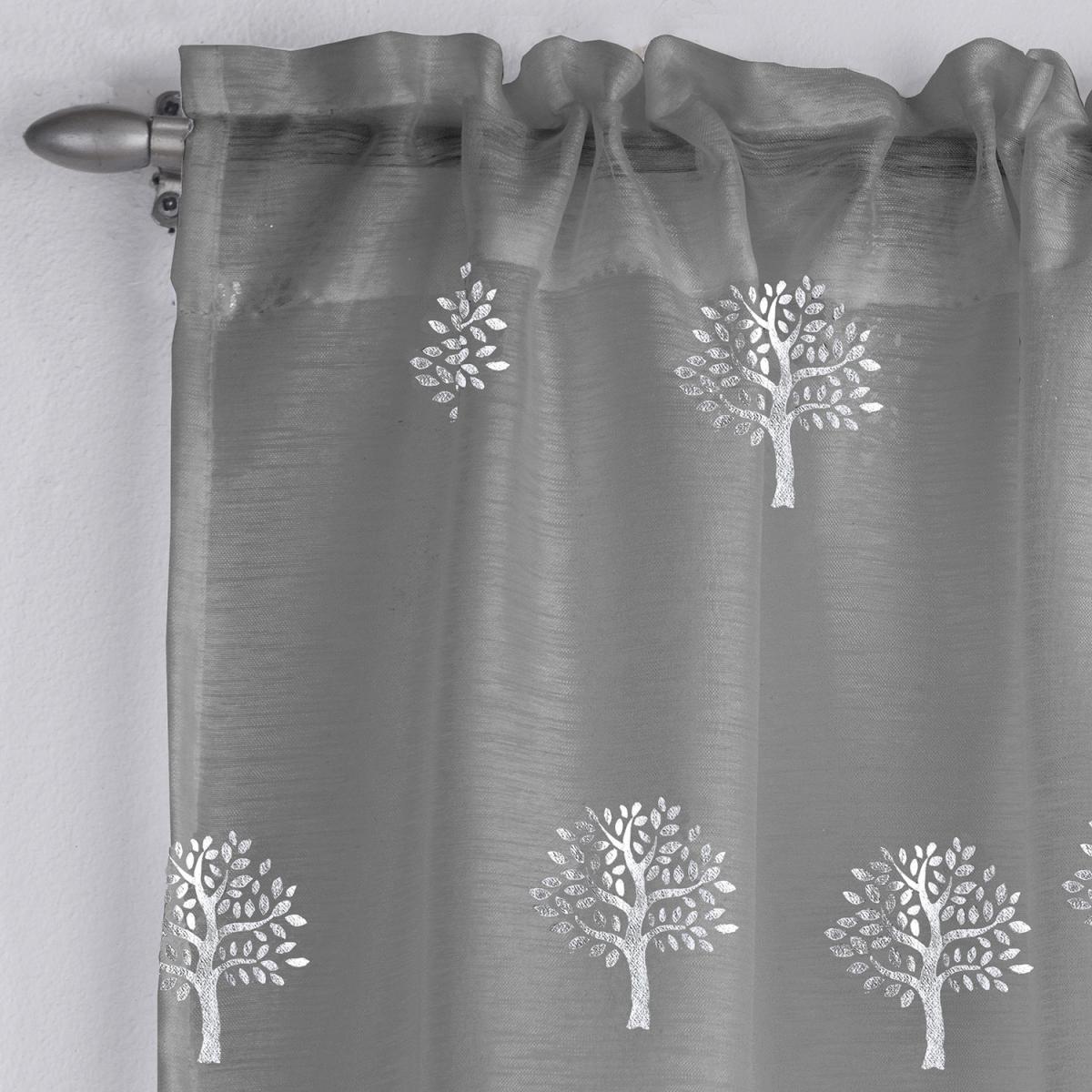 Dainty and elegant, the Birch Panel is cut from sheer fabric and embellished with charming tree silhouettes in a glossy metallic design. Allowing natural light to flow into your home while increasing your privacy, this voile is a classy and lustrous accessory for French doors, patio doors, or other glass entrance-ways.