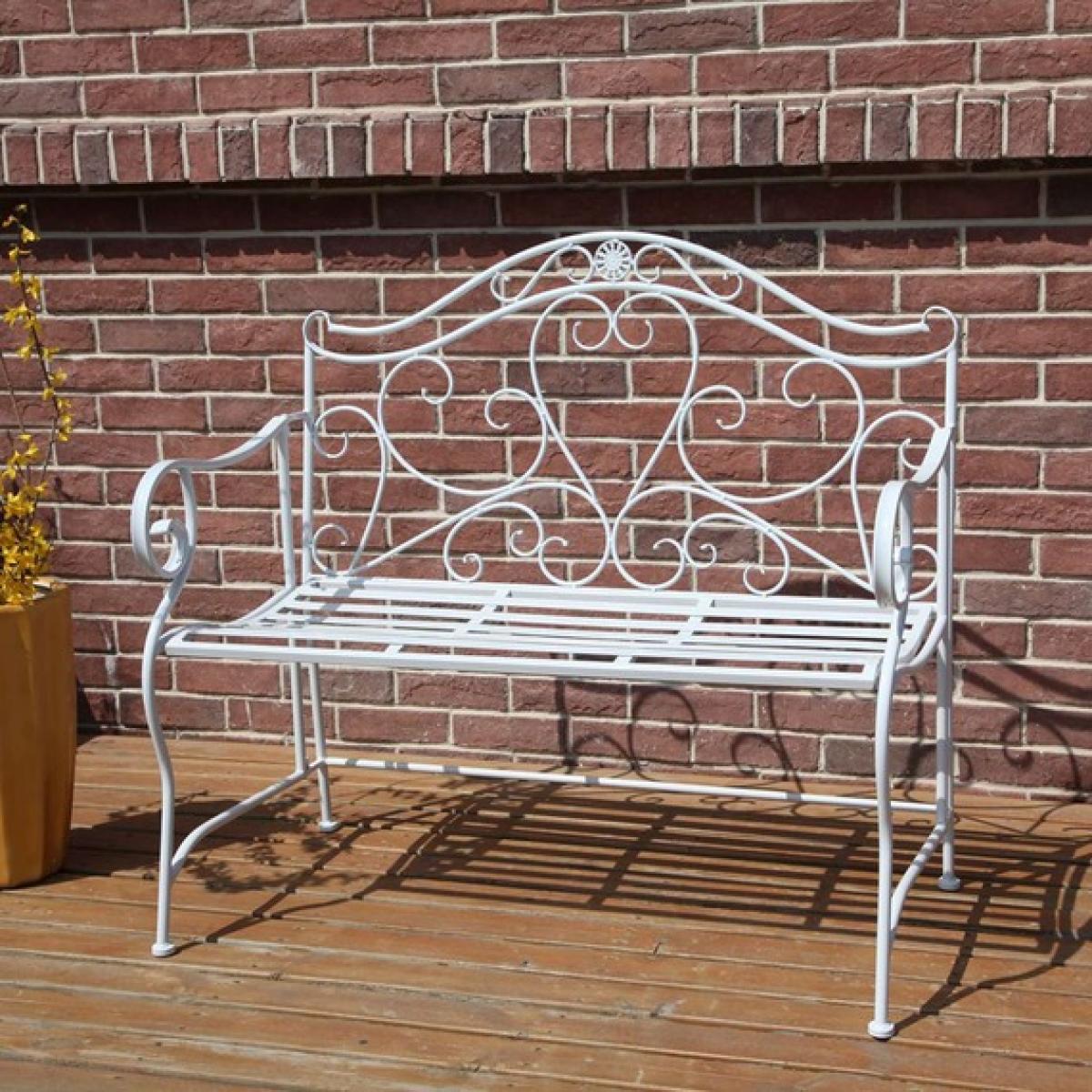 BIRCHTREE 2 Seater Metal Garden Bench - White