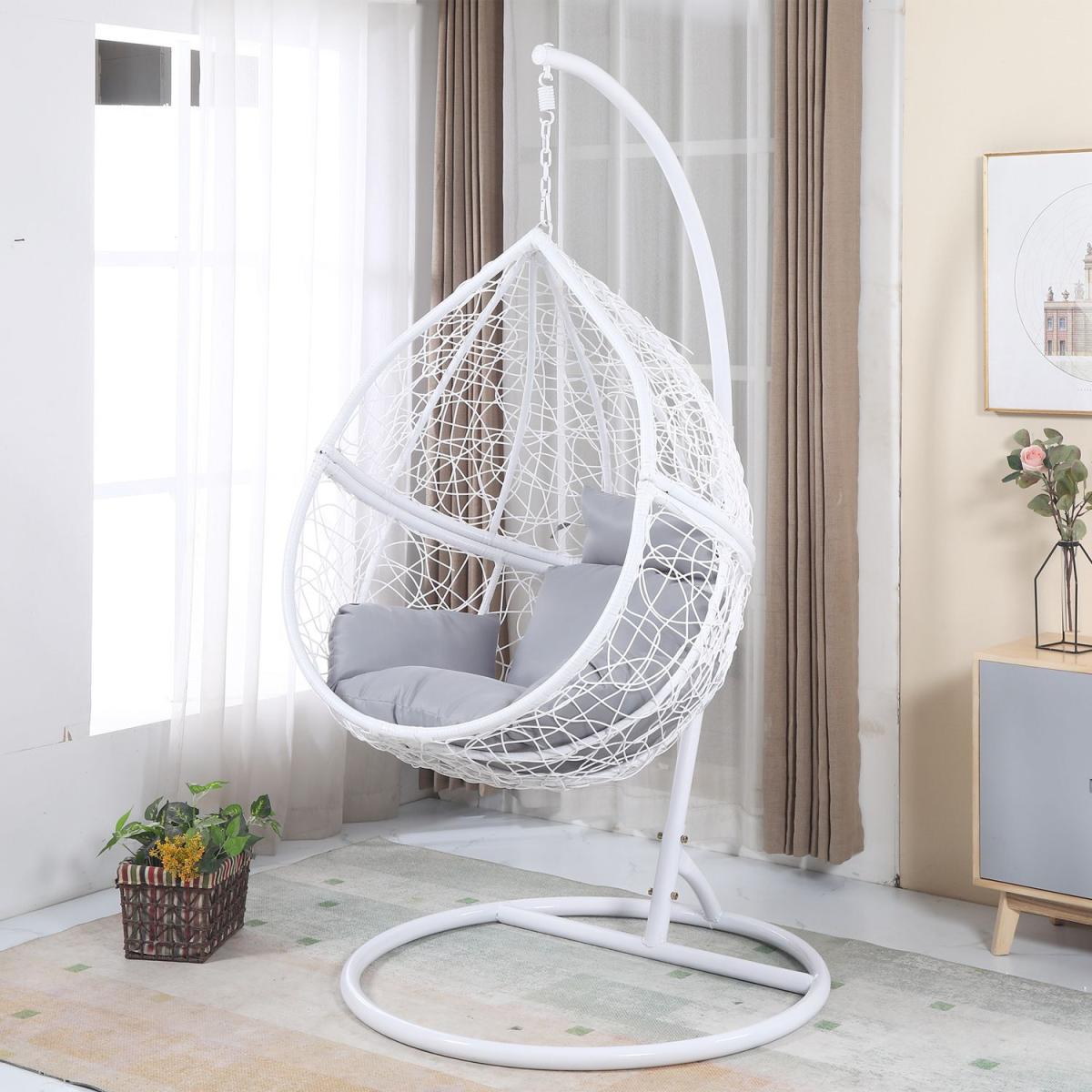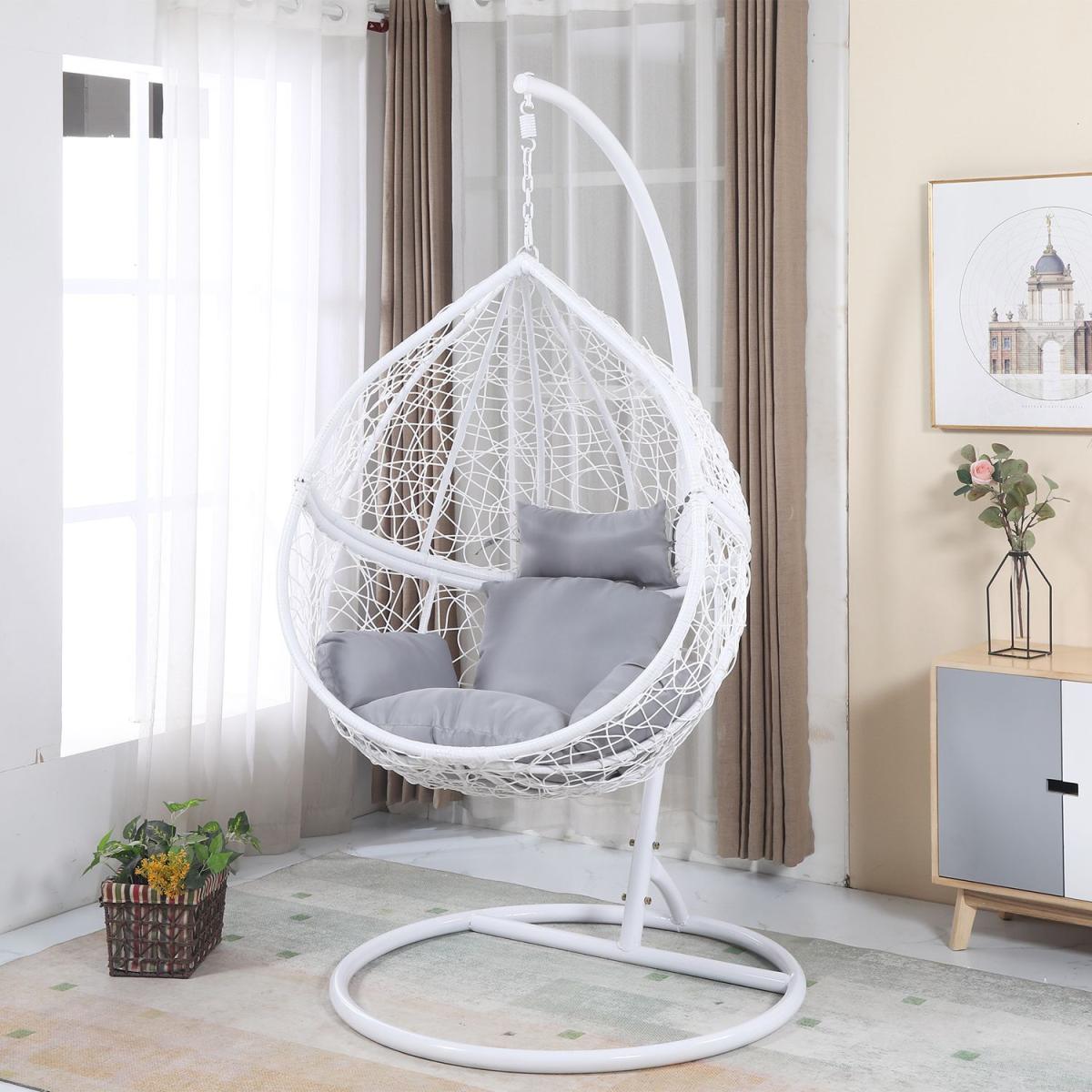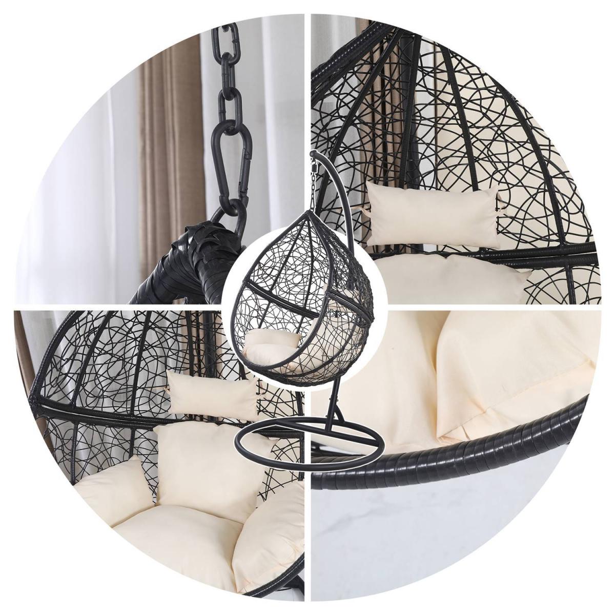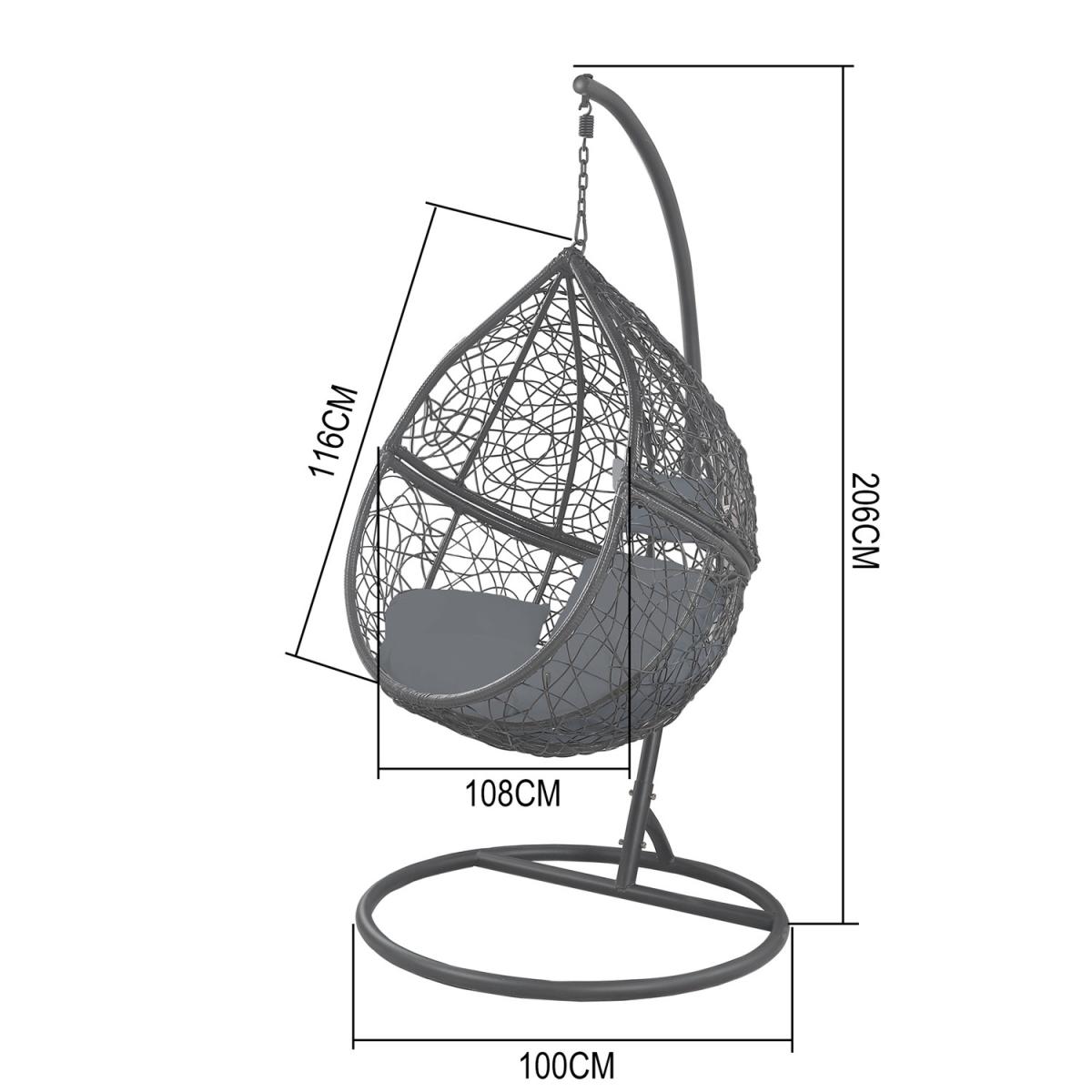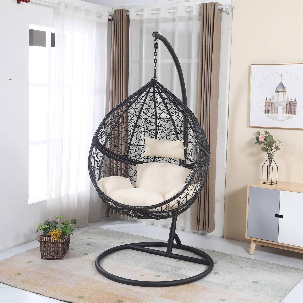 This rattan swing chair is made of strong and high-quality PE, Polyester and Iron material, sturdy and durable to use. Egg shape design makes the rattan swing chair more adorable and can bring a lot of vitality. The stylish and fashionable design perfectly decorates your garden and also adds a touch of elegant charm to your life. It comes with detailed instructions for quick easy assembly. Perfect for Outdoor or indoor relaxation.