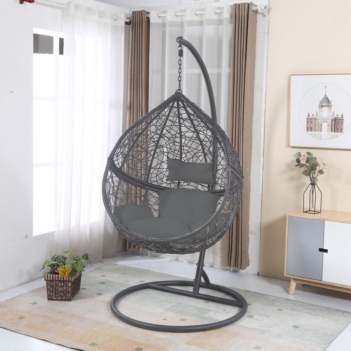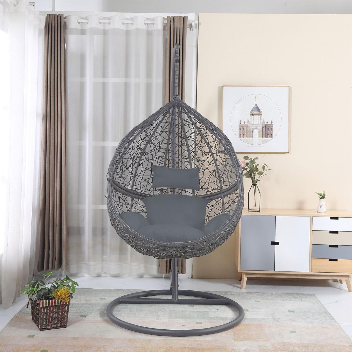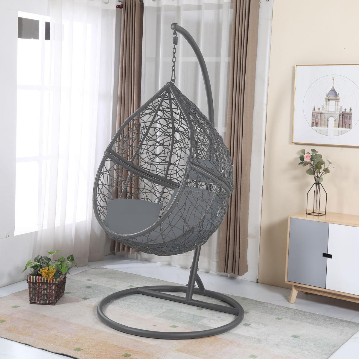 BIRCHTREE Egg Swing Hanging Chair With Cushion Rattan Wicker - Grey