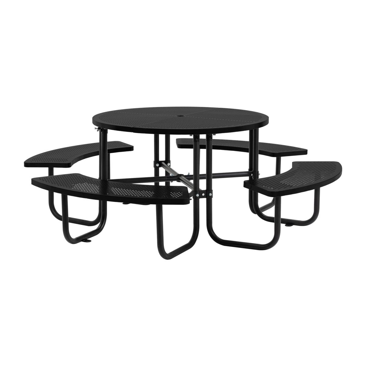The black metal picnic table is a versatile piece that effortlessly complements both contemporary and industrial garden settings. Its round shape encourages easy conversation and togetherness, making it ideal for family gatherings or casual alfresco dining. As a stylist, I love pairing this table with minimalist or modern outdoor spaces, where its sleek black finish can act as a bold focal point or harmonise with darker-toned furniture. For practical styling tips, consider adding colourful cushions or a tablecloth to soften the look, or surround it with lush greenery to create a inviting and vibrant outdoor scene. Its durable metal construction ensures longevity, so it works equally well in urban patio gardens or larger, more landscaped outdoor areas.