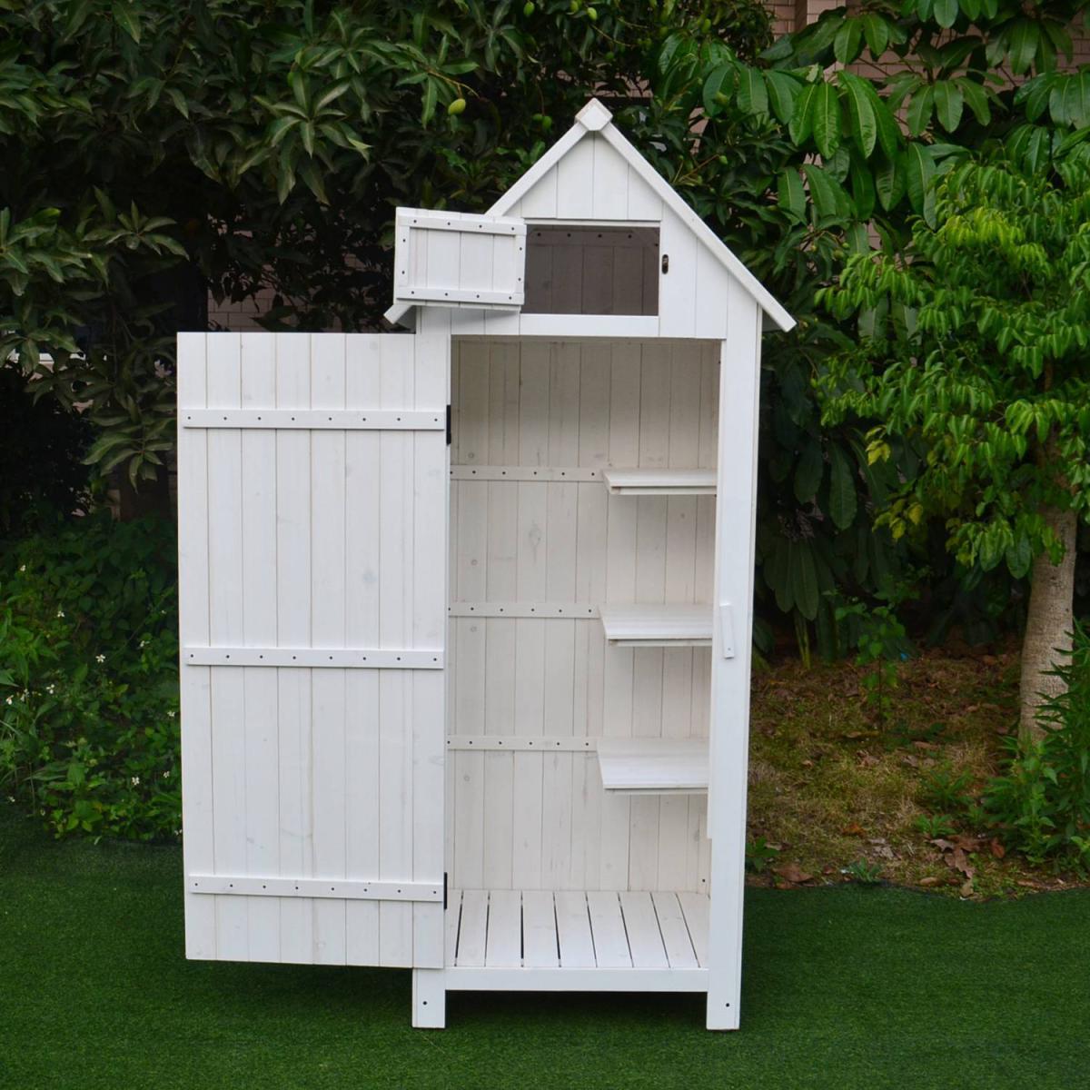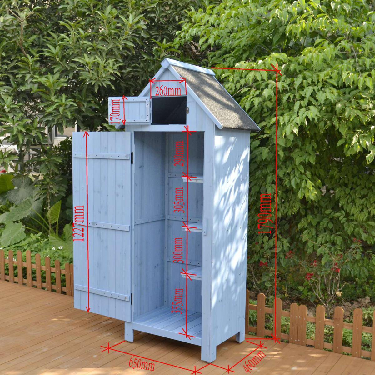 Model No: WW-WBH01. The garden storage shed is an ideal solution for organising all your garden tools and equipment, BBQ's and tools. The wooden surface covered with waterproof paint and the roof with asphalt help provide added protection outdoors. With a traditional and stylish appearance as well as a spacious design, the shed is designed to be an elegant and practical addition to your garden. An elegant and practical addition to your garden. Ideal for storing your garden equipment and tools. Flat packed and easy to assemble.