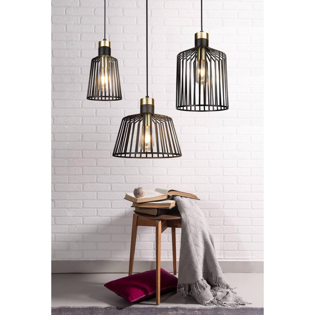 Make a statement with this eye catching cage frame pendant. The sturdy black body includes antique brass for a sophisticated additional touch. The design of the light nods towards an industrial style which is ideal for placing in a contemporary home. Available in three different shapes the range is sure to offer the perfect fitting for your setting. The fittings are adjustable in height.