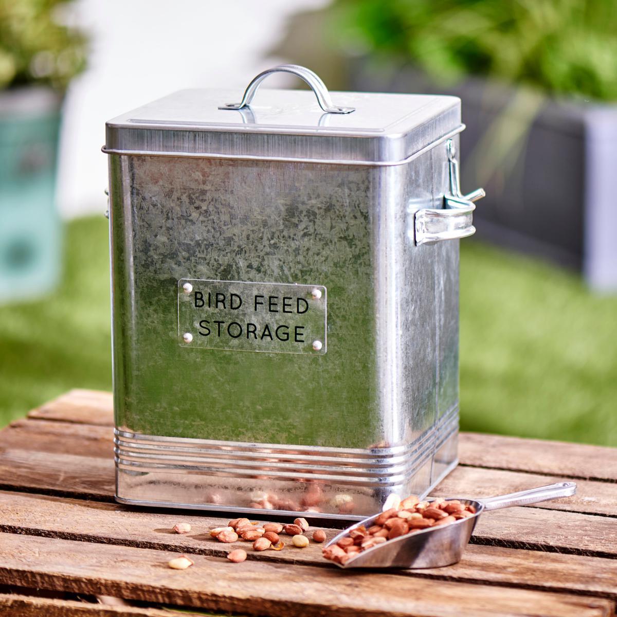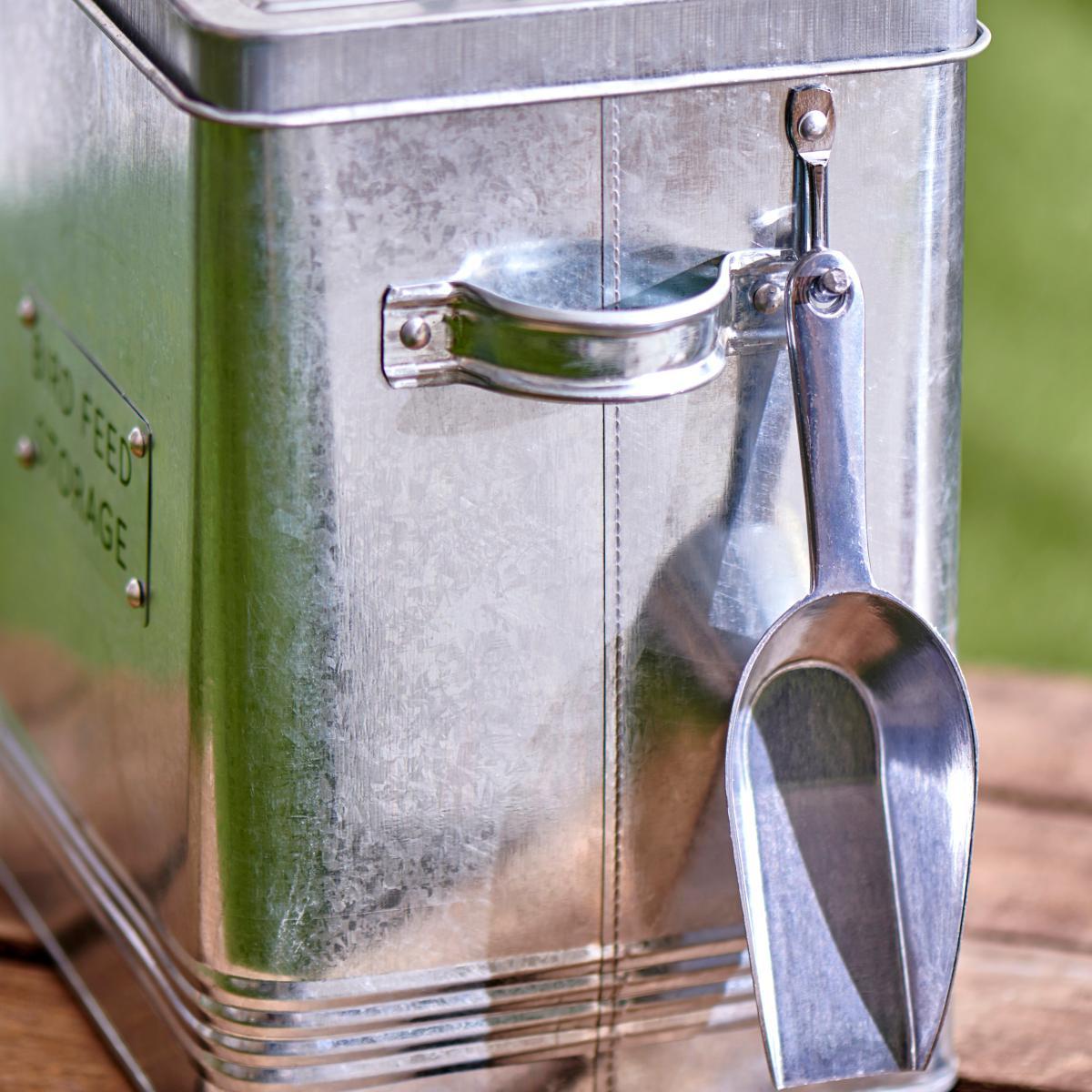 Store your bird seed in our stylish 100% galvanised steel bird feed storer. Lid included, a scoop is provided which can help you easily pick up the bird feed.