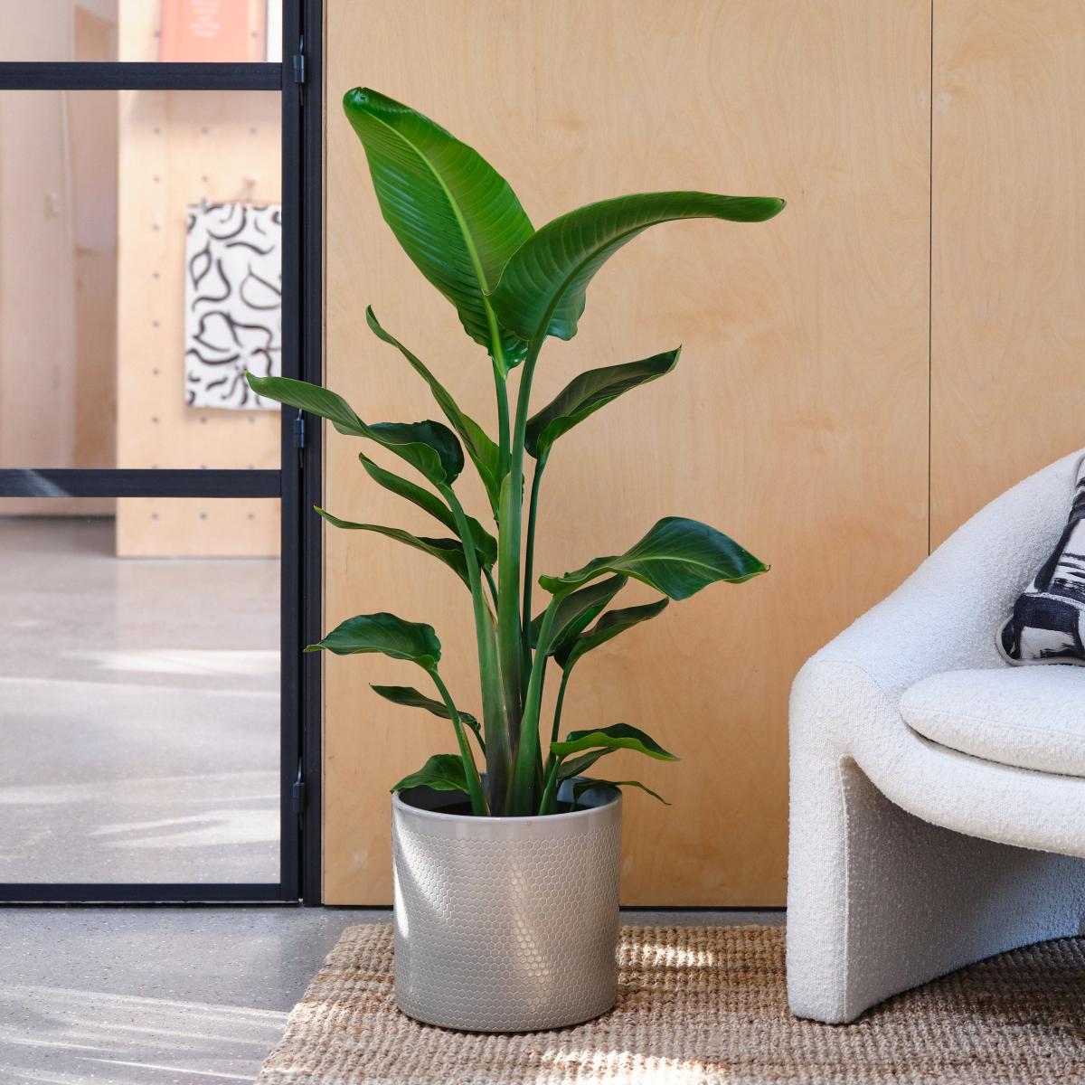 Native to South Africa, the Bird of Paradise is a real talking point with its large, exotic looking leaves on long elegant stems. All strelitzias will, over time, develop splits in their leaves which is a clever trick the plant does to ensure that the younger leaves receive plenty of light. The Bird of Paradise is a relatively low-maintenance houseplant that offers a big impact. Paired with a textured, perfectly-fitting ceramic pot. Please note: As this is a living product your plant may vary to the one photographed. Plant height measurement includes the pot. Width measurement is for the width of the pot only; width of the plant may vary. Please note, unfortunately we cannot deliver this item to Northern Ireland or the Channel Islands.