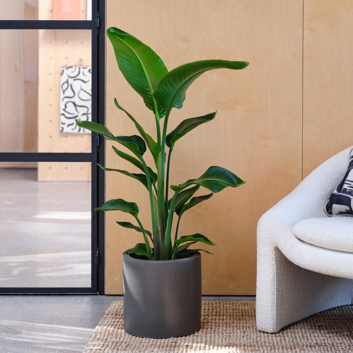 Native to South Africa, the Bird of Paradise is a real talking point with its large, exotic looking leaves on long elegant stems. All strelitzias will, over time, develop splits in their leaves which is a clever trick the plant does to ensure that the younger leaves receive plenty of light. The Bird of Paradise is a relatively low-maintenance houseplant that offers a big impact. Paired with a handmade, perfectly-fitting coloured earthenware pot. Please note: As this is a living product your plant may vary to the one photographed. Plant height measurement includes the pot. Width measurement is for the width of the pot only; width of the plant may vary. Please note, unfortunately we cannot deliver this item to Northern Ireland or the Channel Islands.