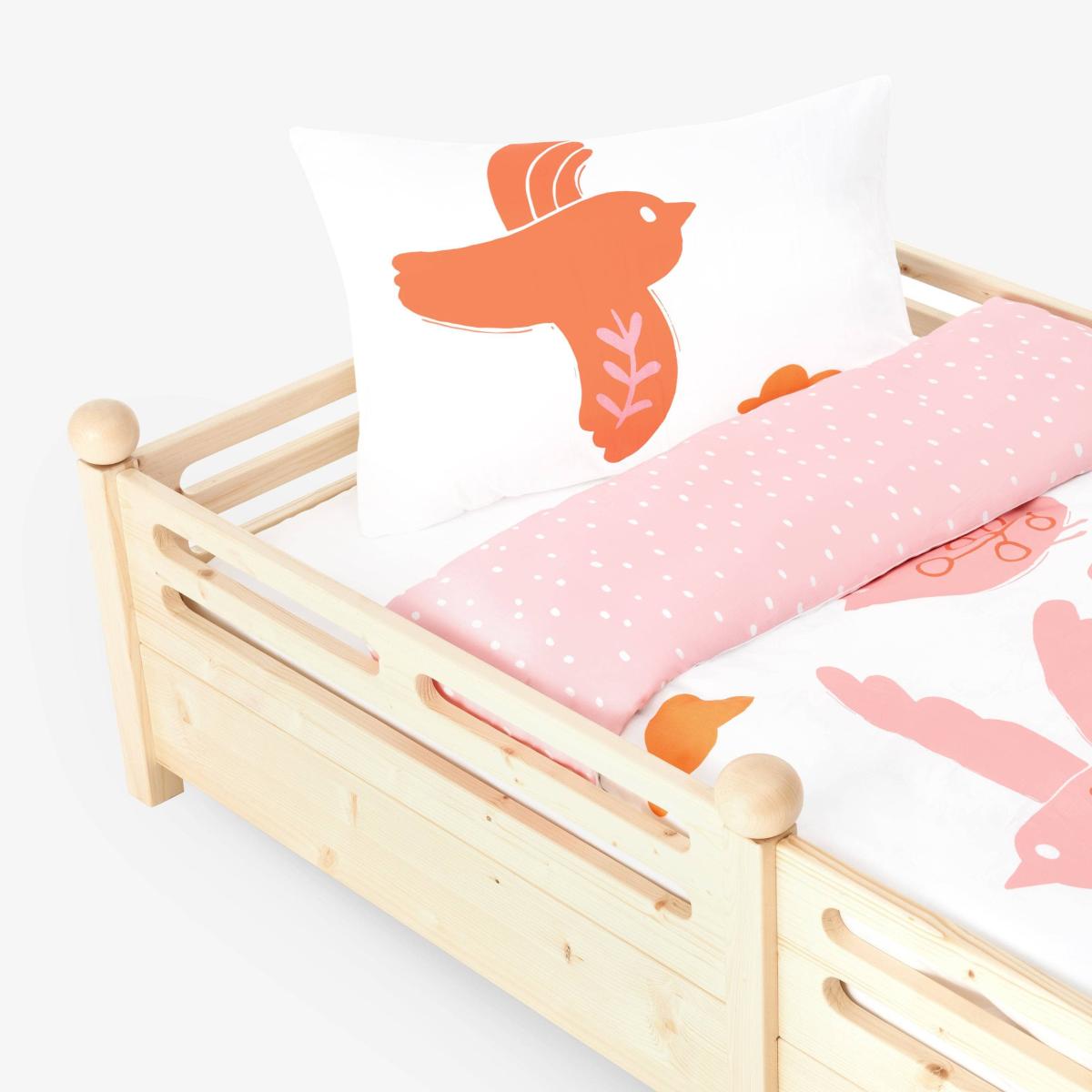 Bird Reversible Duvet Cover Set, Pink - White, 140x200 cm