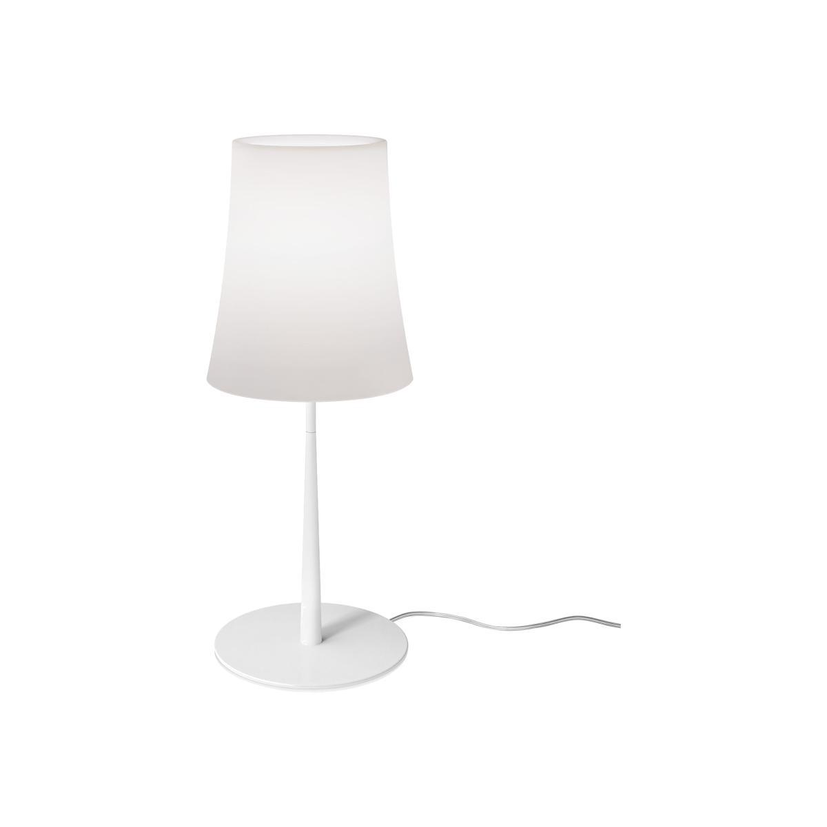 With the Birdie collection, the designer couple, Ludovica and Roberto Palomba offer us a contemporary reinterpretation of the traditional lamp with a lampshade. The collection is expanding with some new models: the poetic design of Birdie is becoming more essential and accessible and extraordinarily versatile. The Birdie Easy table lamp is made up of a translucent polycarbonate lampshade which filters the light and grants it a warm and very welcoming hue. The Birdie Easy table lamp gives off a light powerful enough to read or study, both diffuse and direct (angled downwards). The lacquered metal base is available in a wide range of hues to suit your décor. The slightly flared shape of the lampshade is characteristic of the Birdie collection, providing it with all its uniqueness and iconic nature.