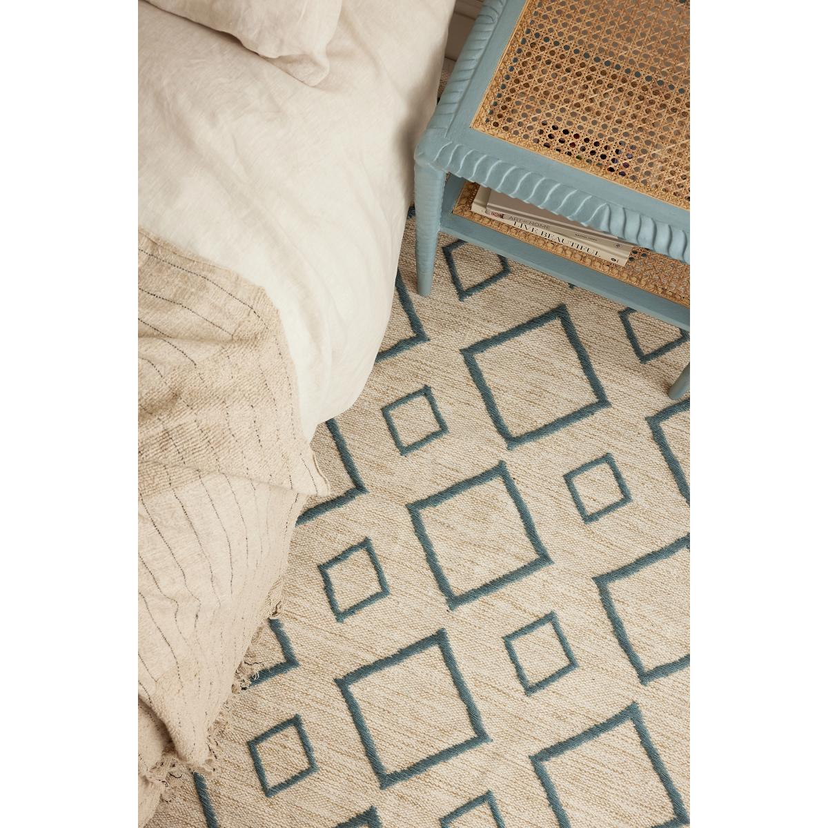 Playful geometric motifs, embroidered jute detail, and a soft composition of wool and cotton make up this beautiful hand woven rug. Rhombus Rug by Birdie Fortescue in Blue Size: 170x240cm at Anthropologie