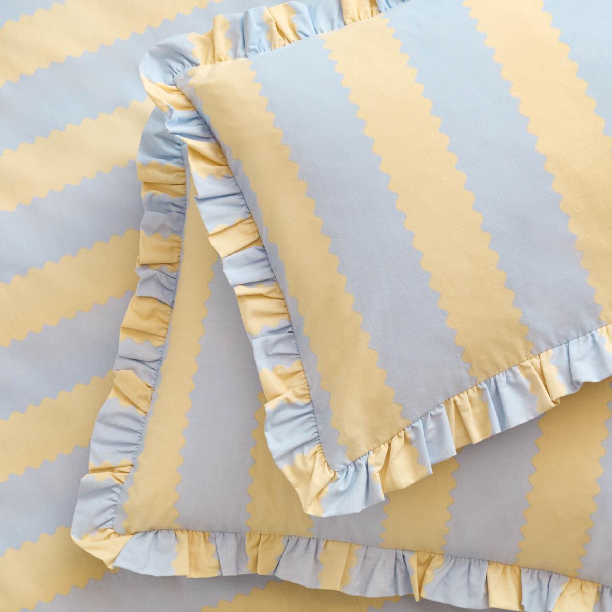 Birdie Stripe Ruffle Pillowcase Pair - Lemon-Sky