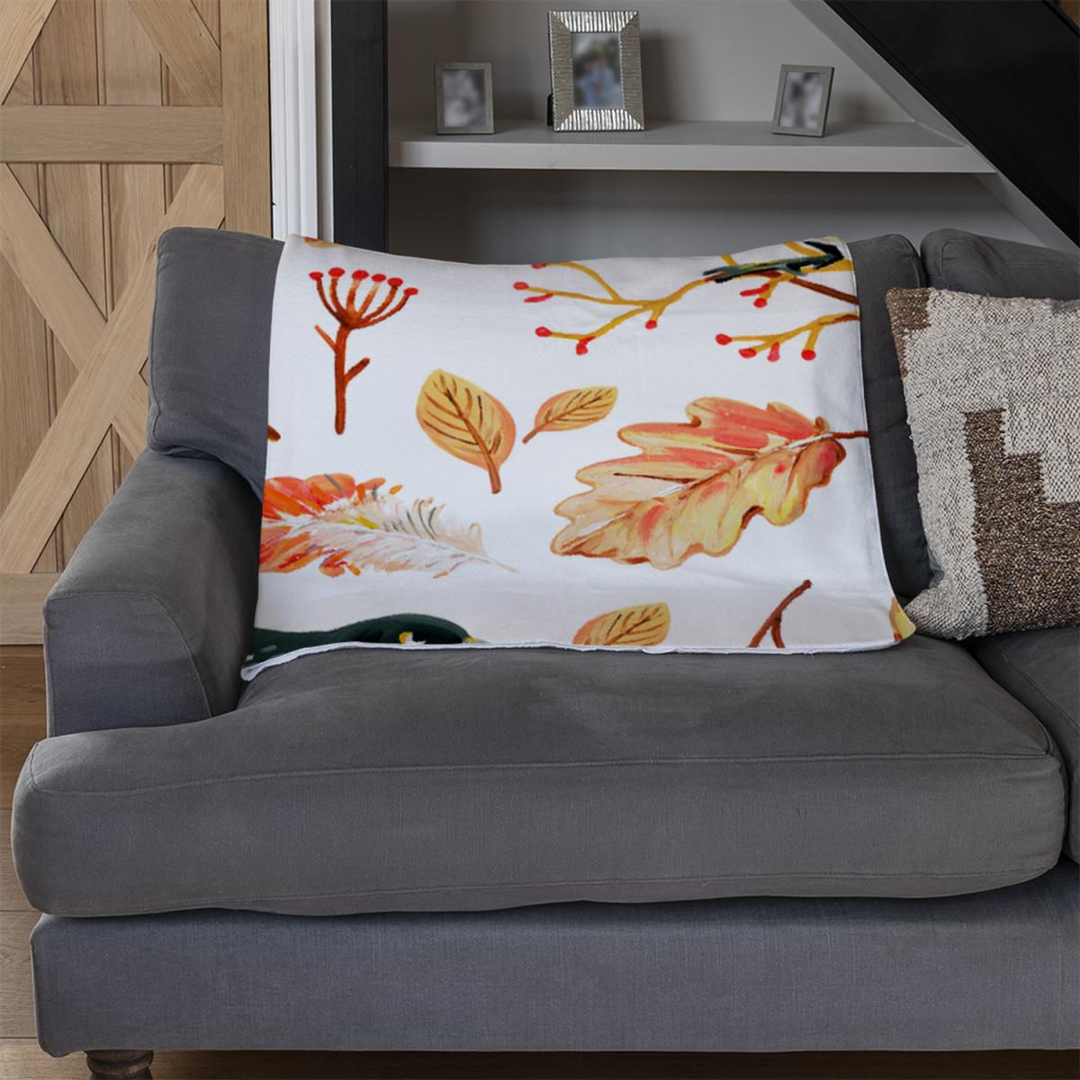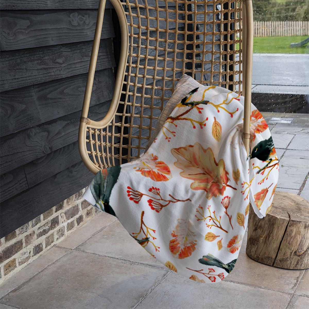 This blanket is a great way to introduce seasonal colour and pattern into a living space. I love how the warm orange tones and autumnal leaf design can brighten up neutral interiors or complement warm colour palettes. It works particularly well styled casually over a sofa or armchair, adding a cosy, layered feel. For practical styling tips, try pairing it with textured cushions in complementary shades or draping it over the foot of a bed for a pop of colour during colder months. Its vibrant print also makes it a charming accent in nature-inspired schemes or eclectic interiors, making it versatile and functional for everyday use or as a stylish finishing touch.