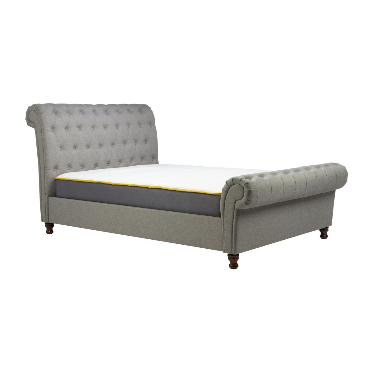 The perfect statement piece, the Castello combines stylish buttoned detailing with a striking rolled headboard and footboard design. Upholstered in polyester with complementary dark rubberwood feet, the Castello is now available in a steel, charcoal or grey fabric. This frame has a sprung slatted base to give natural bounce, adjusting to where pressure is most exerted for greater comfort. Also available in a side ottoman bed frame. The maximum weight load for the 4'6 frame is 300 kg, the 5' frame is 400 kg, and the 6' frame is 450 kg. Please note Birlea beds are only suitable for a UK standard size mattress and the recommended maximum mattress height is 305 mm.