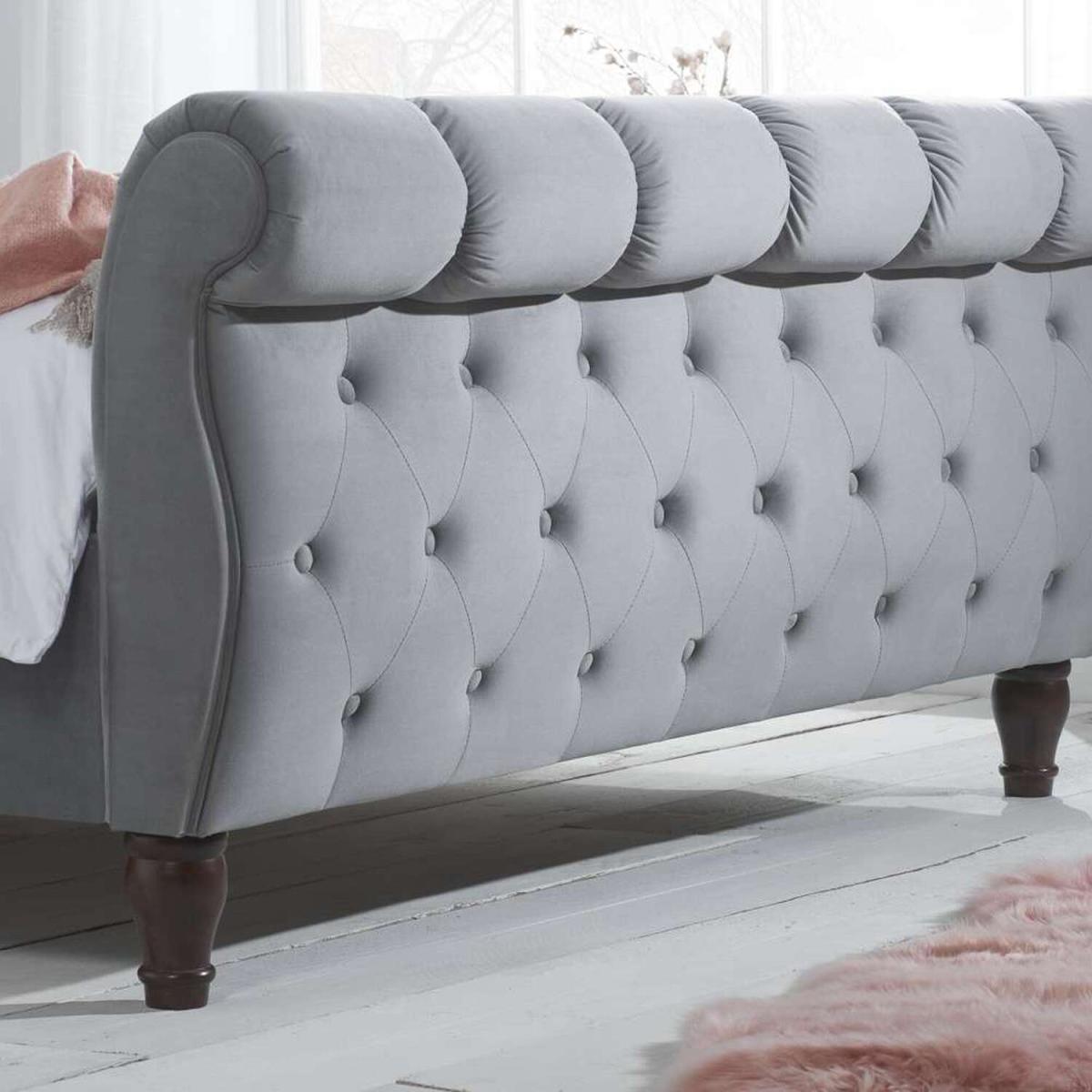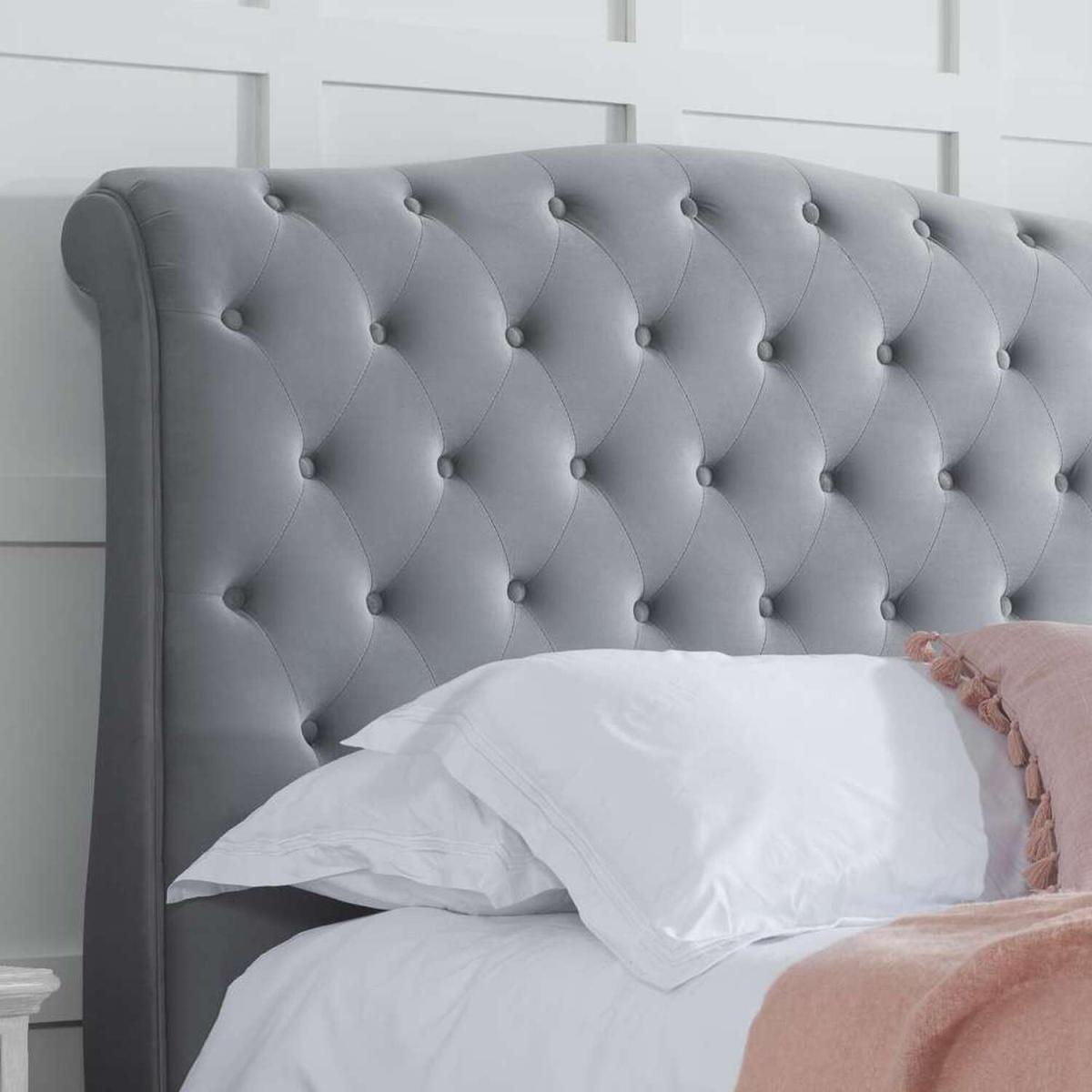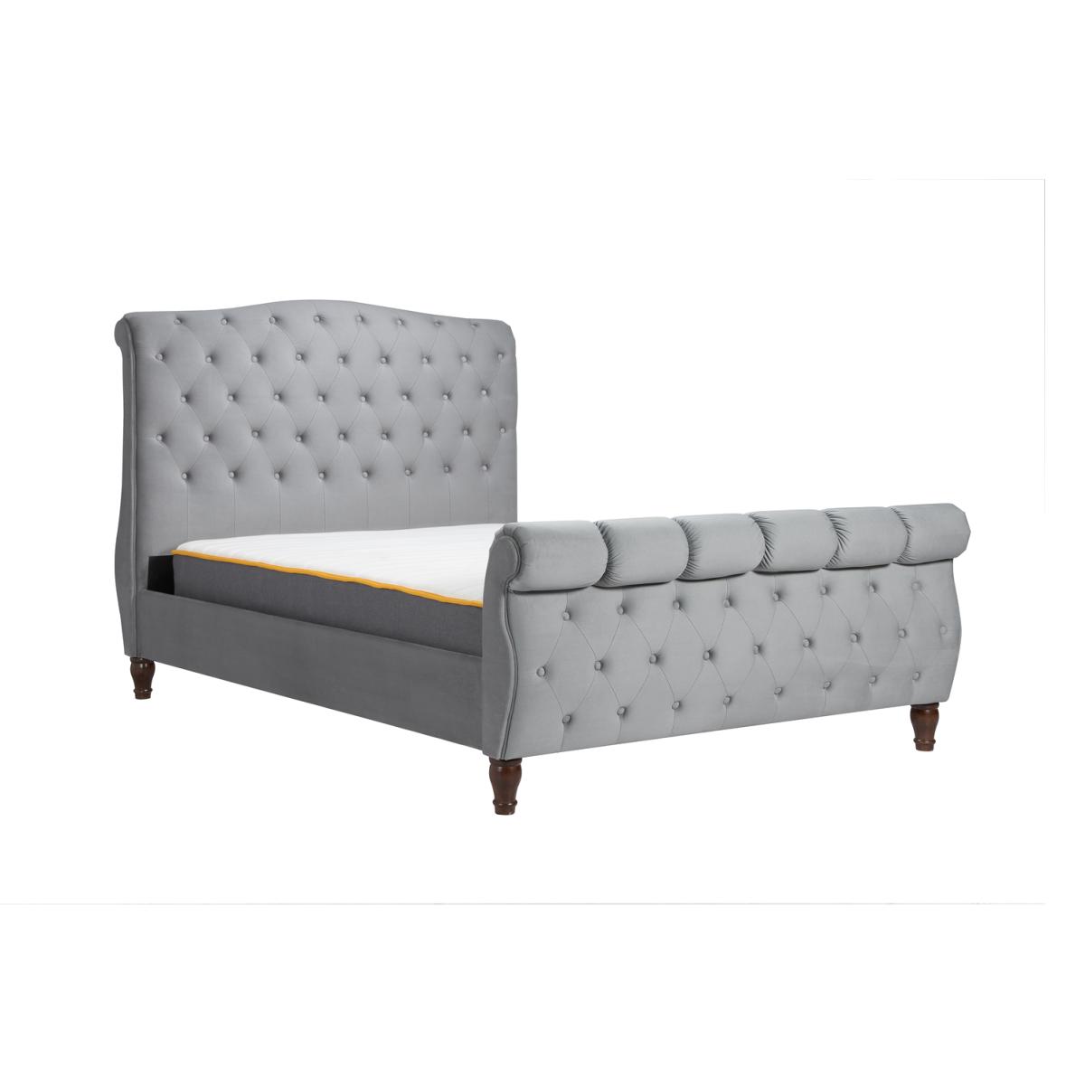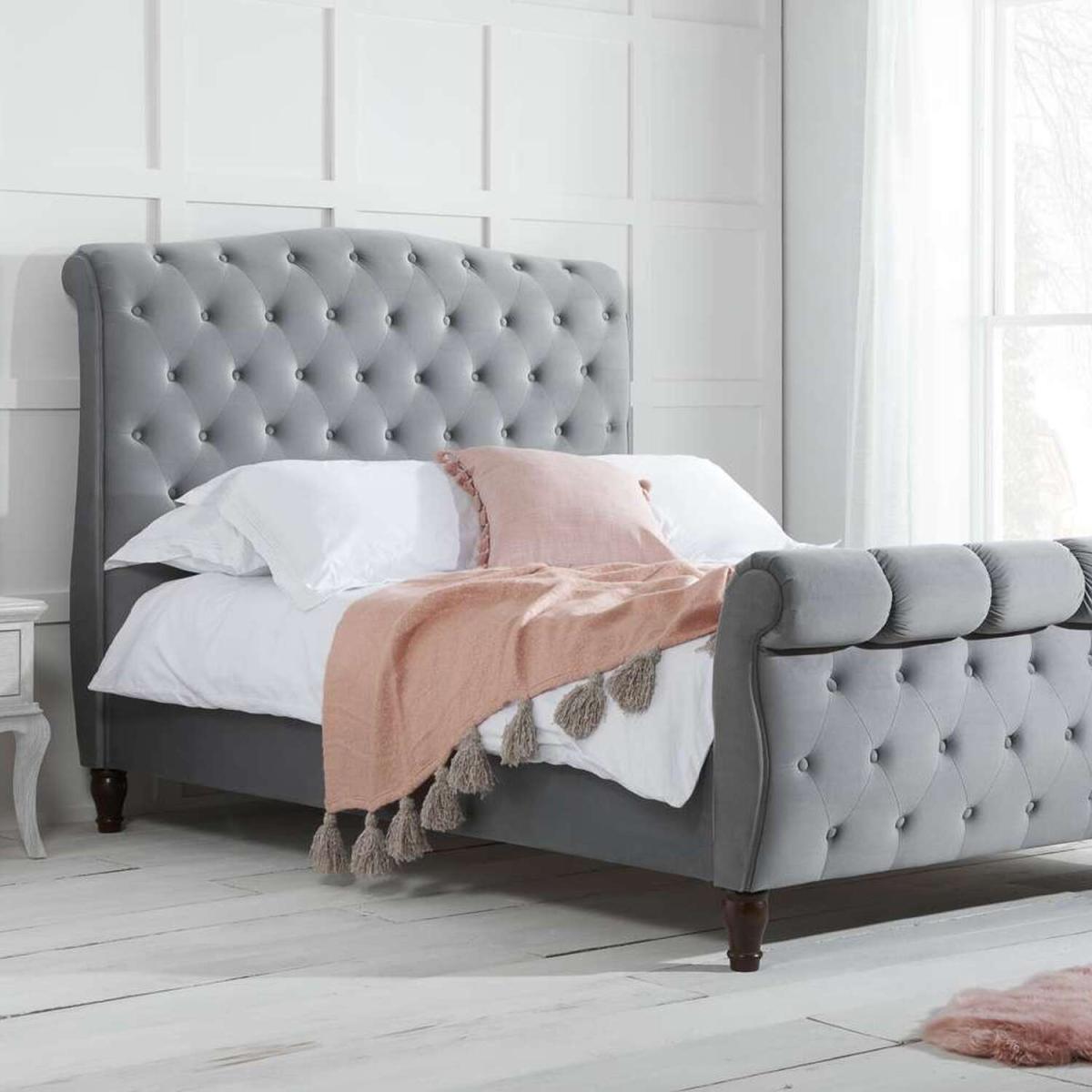 This fabulous contemporary bed frame will be focal point in any bedroom. The Cologne bedstead is upholstered in either a steel crushed velvet or a grey fabric and features a striking buttoned headboard. This frame has a sprung slatted base to give natural bounce, adjusting to where pressure is most exerted for greater comfort. Also available in an ottoman bed frame. The maximum weight load for the 4'6 frame is 300 kg, and the 5' frame is 400 kg. Please note Birlea beds are only suitable for a UK standard size mattress and the recommended maximum mattress height is 305 mm.