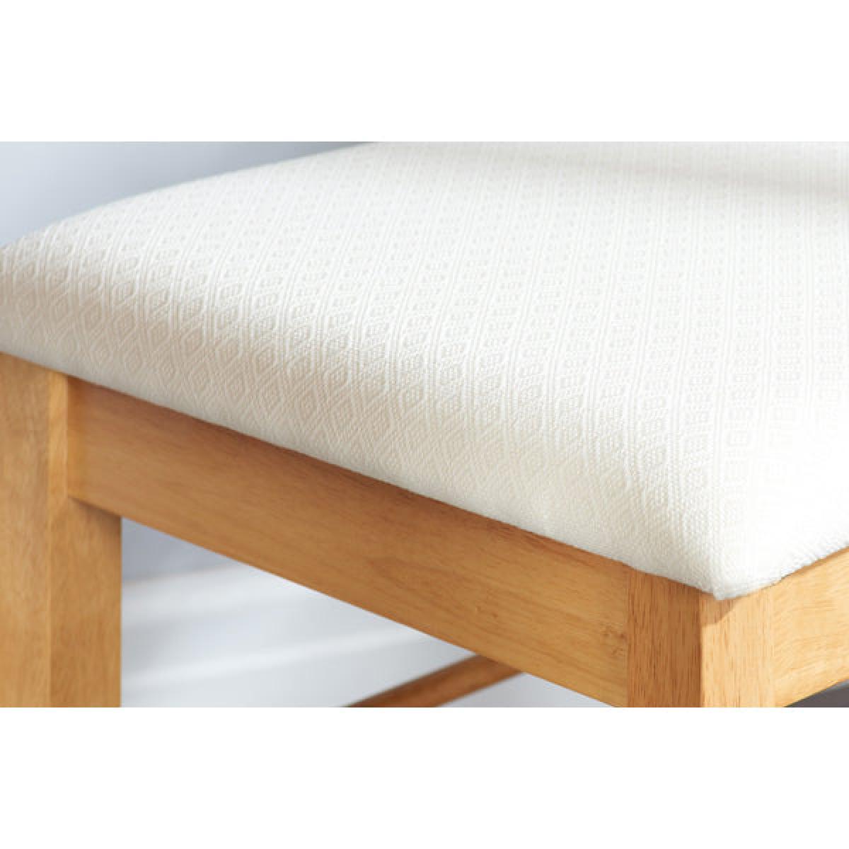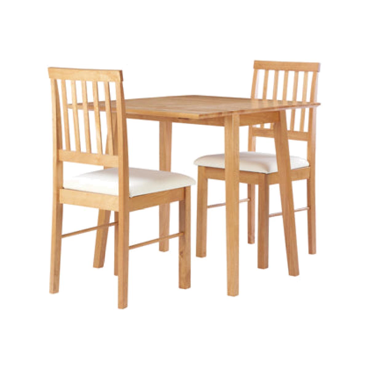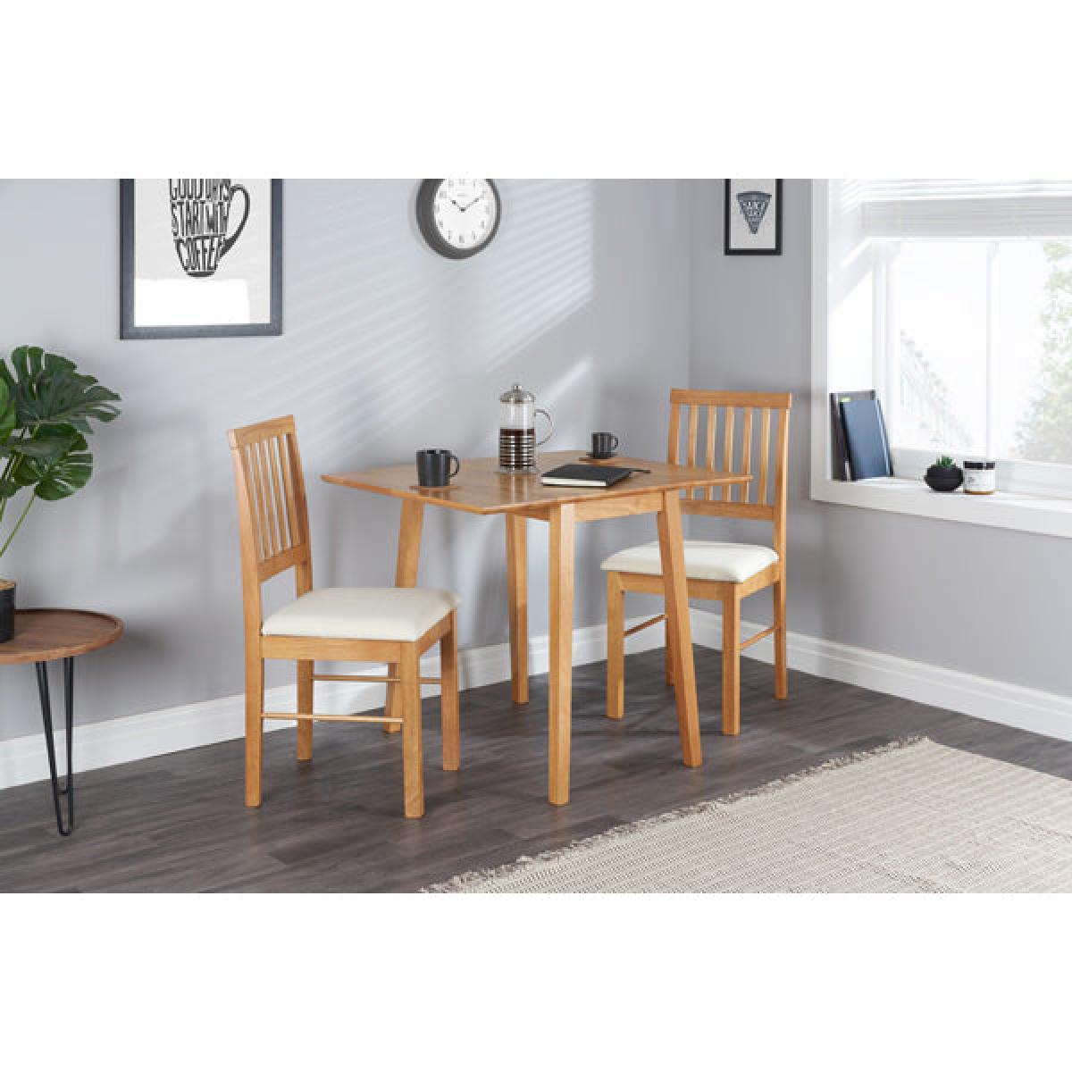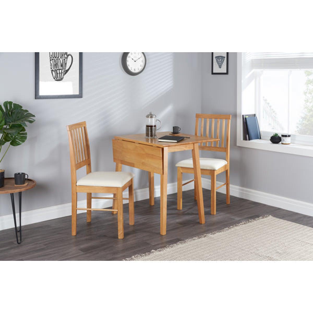 Crafted with care, the Drop Leaf dining set offers elegant dining with its oak finish and soft upholstered seating. Constructed from rubberwood with polyester upholstery, the Drop Leaf dining set is the perfect addition to any compact dining space.