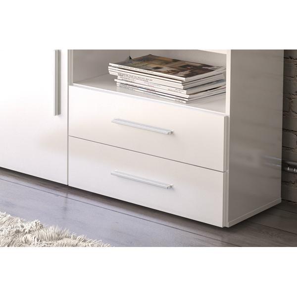 The sleek and stylish Edgeware 1 Door 2 Drawer Sideboard will look stunning in any living room thanks to it’s high gloss facial. This combination of closed and open storage spaces in this modern sideboard makes it a highly functional piece with clean lines for a contemporary style. Featuring 2 handy pull out drawers this is ideal for storing DVD’s plus an open compartment for electronic devices and 2 hidden storage cabinets.