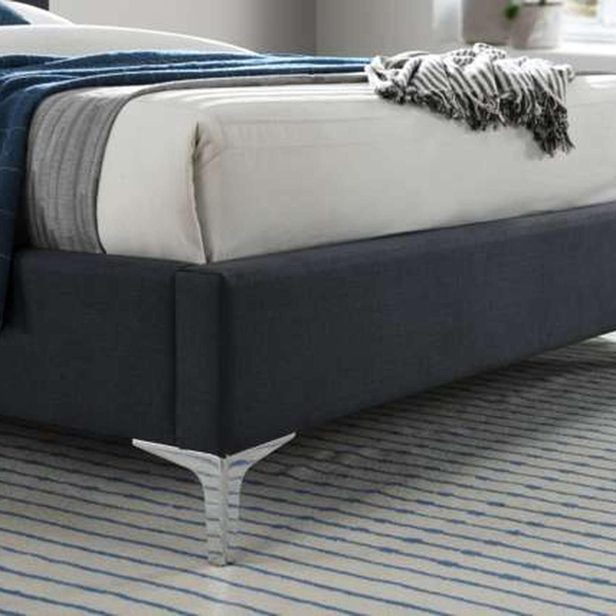Modern stylish the Finn bed is sure to impress. The Finn fabric bed is upholstered in a stunning steel blue charcoal fabric and features an overhanging headboard. The Finn features stunning silver feet making it a real statement piece. Featuring a sprung slatted base to give natural bounce, this bed adjusts to where pressure is most exerted for greater comfort. The maximum weight load for the 4"6 frame is 300 kg, the 5" frame is 400 kg, and the 6" frame is 450 kg. Please note Birlea beds are only suitable for a UK standard size mattress and the recommended maximum mattress height is 305mm.