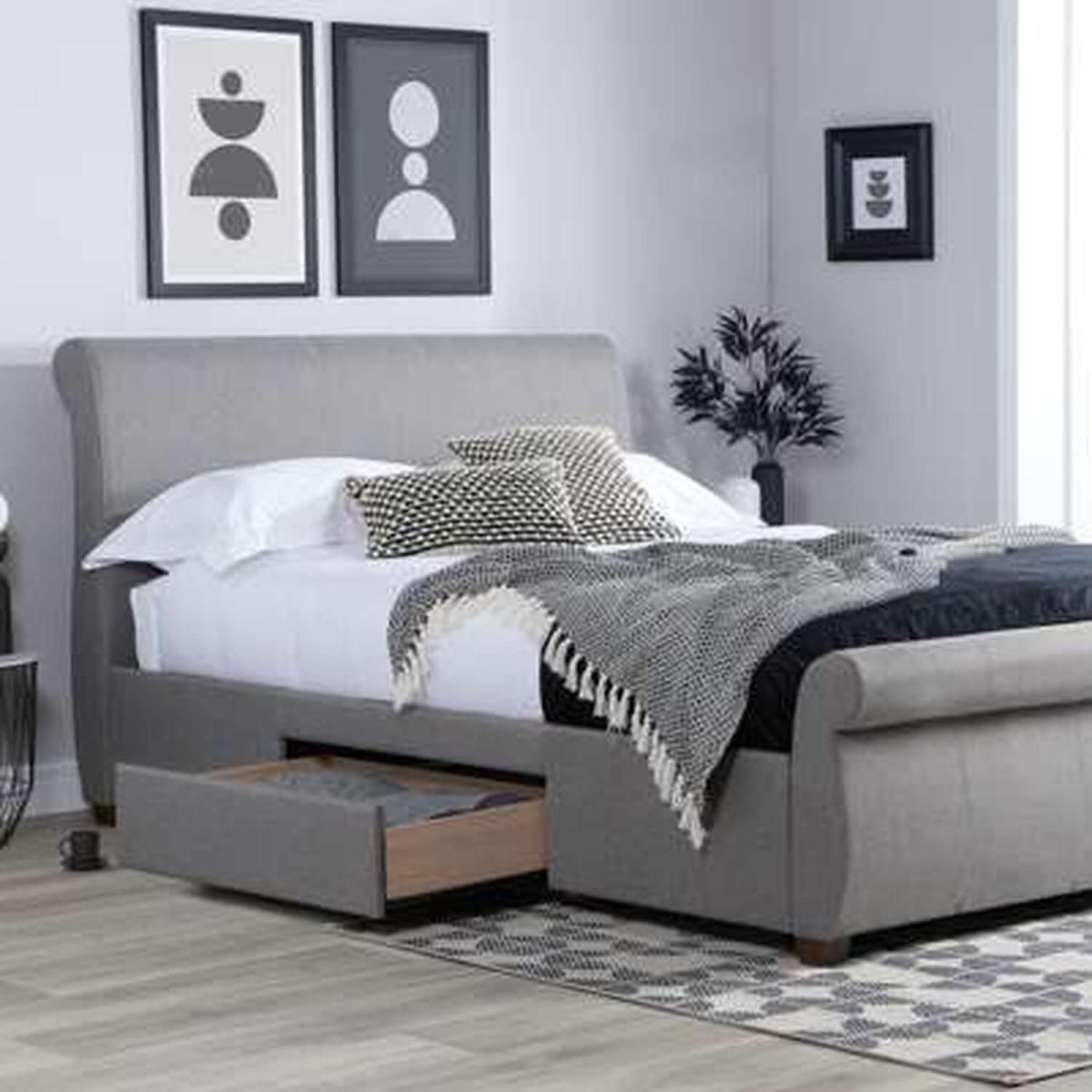 This sophisticated sleigh bed is a timeless classic. With an attractive rolled headboard and footboard, the Lancaster bed is the perfect statement piece for any bedroom. Featuring a sprung slatted base to give natural bounce, this bed adjusts to where pressure is most exerted for greater comfort. Add a touch of elegance to any style bedroom with the Lancaster bed. The maximum weight load for the 4'6 frame is 300 kg, and 400 kg for the 5' frame. Please note Birlea beds are only suitable for a UK standard size mattressand the recommended maximum mattress height is 2300mm.