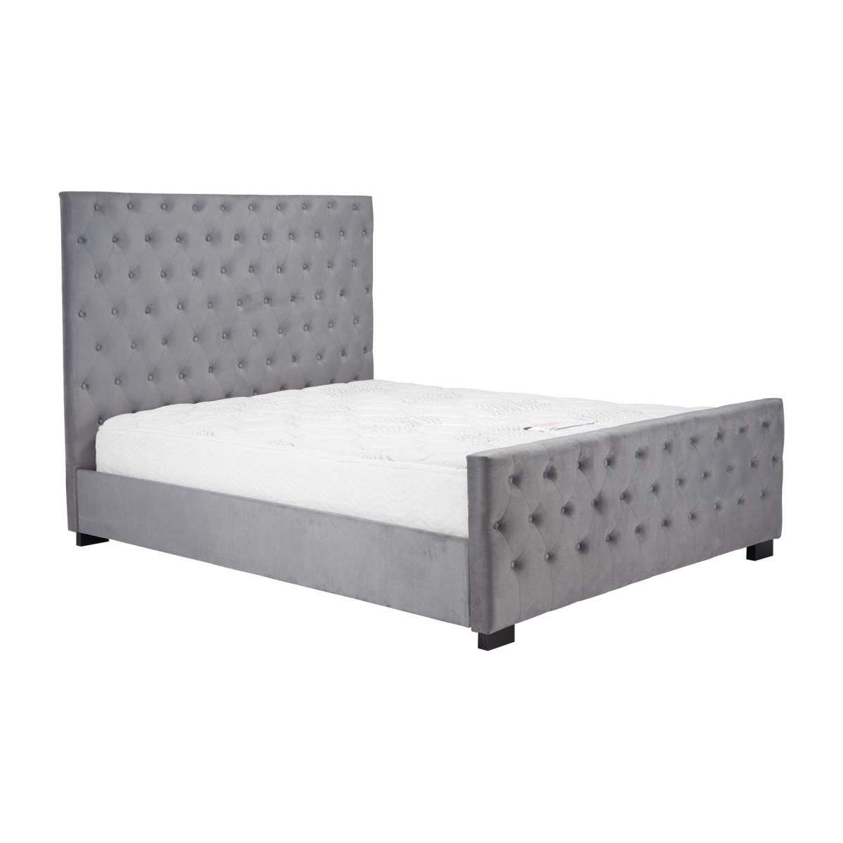 With a striking button detailed headboard and matching footboard the Marquis bed is the perfect statement piece. The Marquis bed is upholstered in a luxurious grey velvet and features a beautiful tufted detailing headboard. Featuring a sprung slatted base to give natural bounce, this bed adjusts to where pressure is most exerted for greater comfort. Add a touch of elegance to any style bedroom with the Marquis Bed. The maximum weight load for the 4'6 frame is 300 kg, the 5' frame is 400 kg, and the 6' frame is 400kg. Please note Birlea beds are only suitable for a UK standard size mattressand the recommended maximum mattress height is 3200mm.