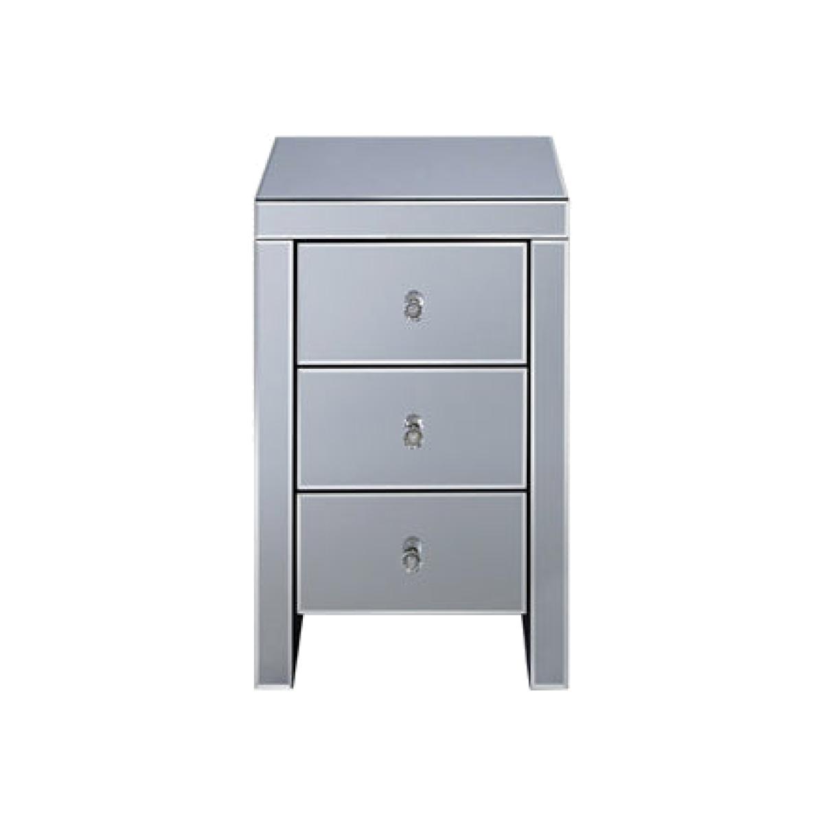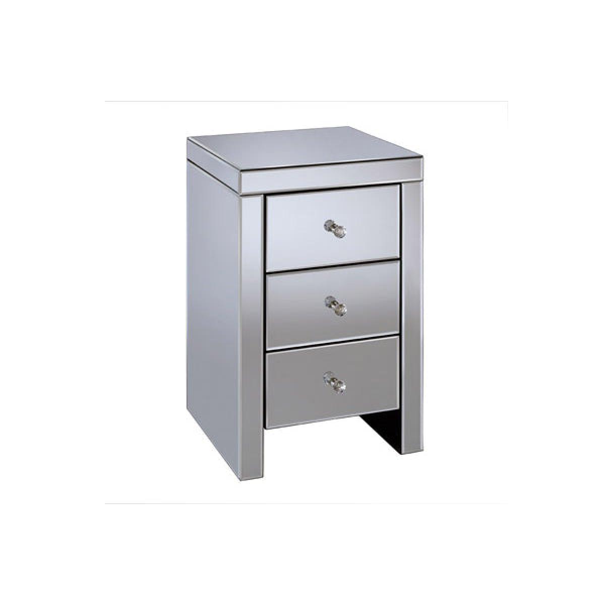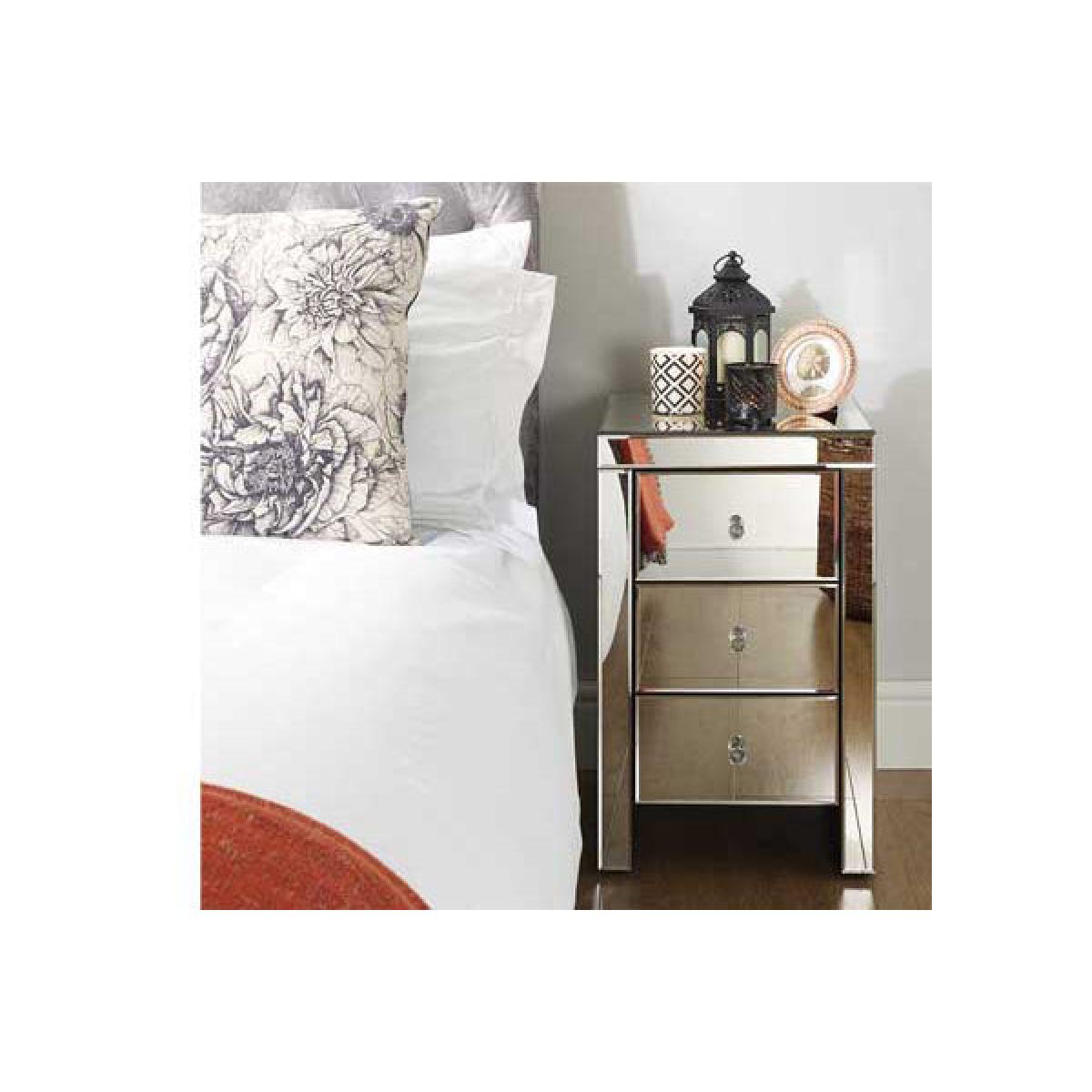 The clean, contemporary and chic Seville range will add a sense of elegance to any home. Constructed from a MDF frame this 3 drawer bedside features beautiful bevelled edges along with mock crystal handles. This versatile range will sit comfortably in a modern or traditional setting making this mirrored furniture a welcome addition to any home. This item comes pre-assembled for additional convenience and is part of a complete bedroom collection. Cleaning and Care:Wipe with dry cloth.