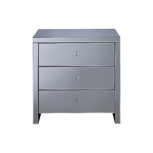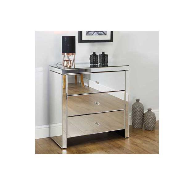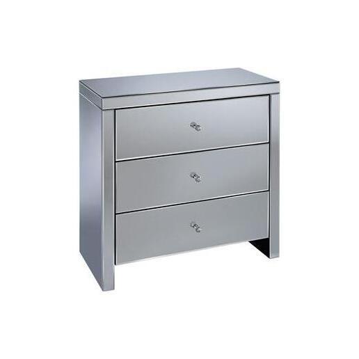 The clean, contemporary and chic Seville range will add a sense of elegance to any home. Constructed from a MDF frame this 3 drawer chest features beautiful bevelled edges along with mock crystal handles. This versatile range will sit comfortably in a modern or traditional setting making this mirrored furniture a welcome addition to any home. This item comes pre-assembled for additional convenience and is part of a complete bedroom collection. Cleaning and Care: Wipe with dry cloth.