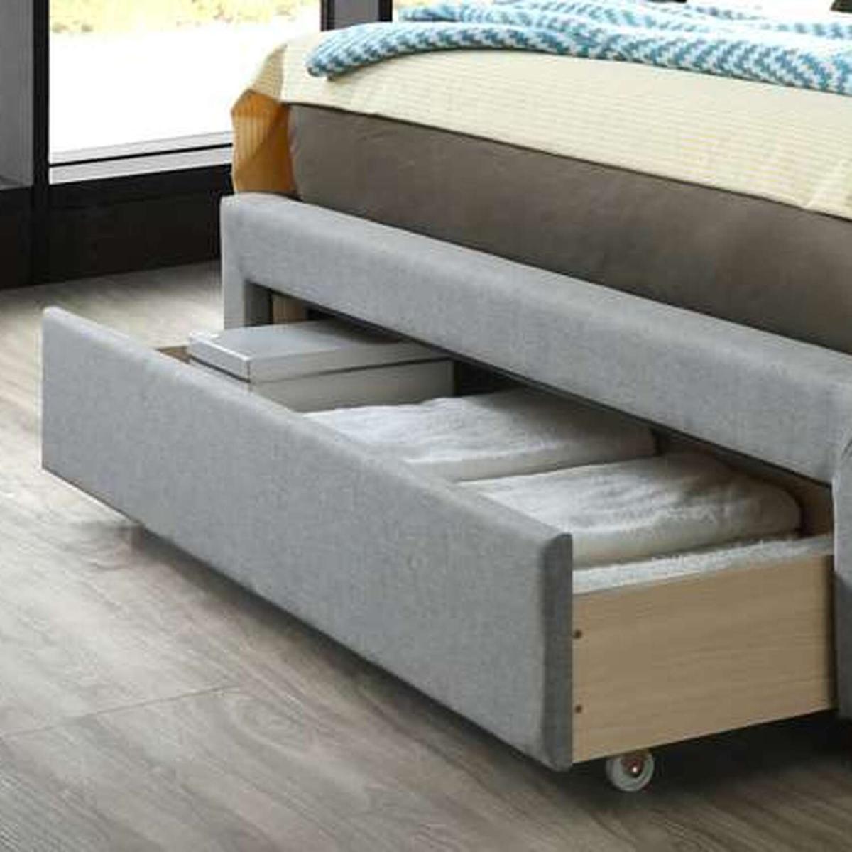 Classic and sophisticated, yet functional, the Shelby bed boasts a modern frame and also concealsthree useful storage drawers. Upholstered in a beautiful soft grey fabric, this low-based bed features a detailed deep-buttoned headboard. This frame has a sprung slatted base for natural bounce, adjusting to where pressure is exerted most to provide greater comfort. The maximum weight load for the 4'6 frame is 400 kg, and the 5' frame is 450 kg. Please note Birlea beds are only suitable for a UK standard size mattress and the recommended maximum mattress height is 3200mm.