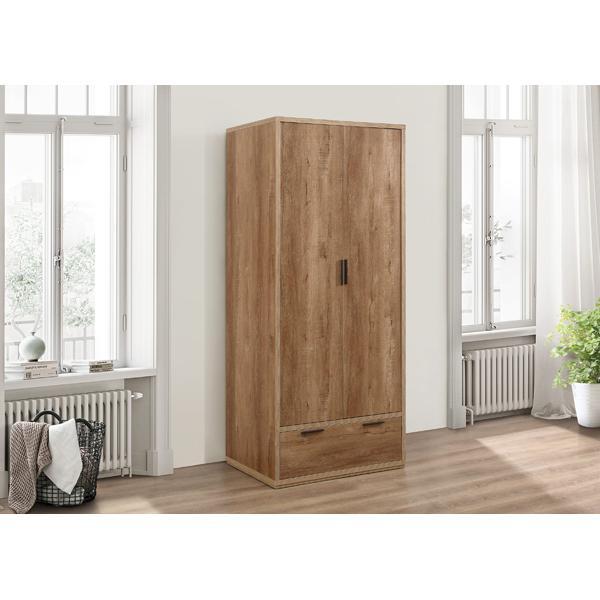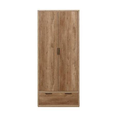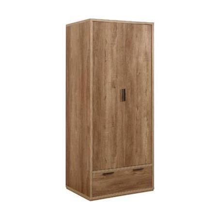 The Stockwell range provides a touch of reclaimed design to any home. It's rustic oak effect finish and sleek black handles create a truly rustic looking range. This Stockwell 2 door 1 drawer wardrobe comprises a hanging rail as well as a large spacious drawer that glides quietly open on metal runners. It’s simple to achieve a traditional farmhouse feel with items from the Stockwell range. It’s a style so classic that it would work as well in a city flat as it would in a cosy cottage. Care instructions: Wipe carefully with a soft, dry cloth.