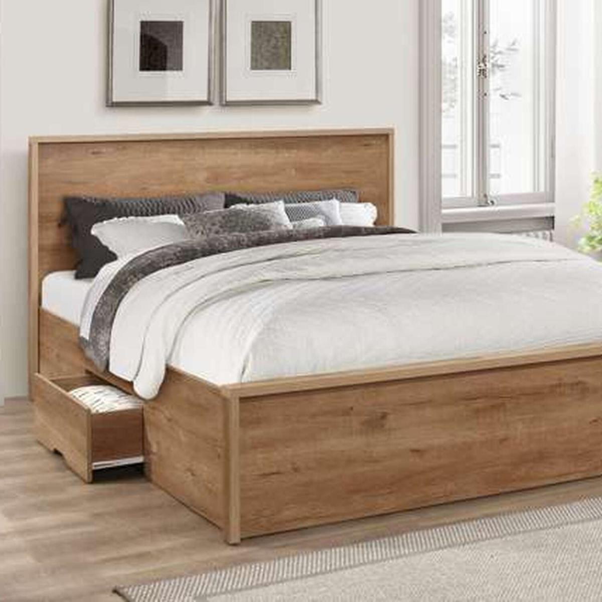 The Stockwell range provides a touch of reclaimed design to any home. It's rustic oak effect finish and sleek black handles create a truly rustic looking range. The Stockwell beds have 2 large spacious drawers that glide quietly open on metal runners. A solid slatted base provides firmer support for this frame and allows air to circulate beneath the mattress. It's simple to achieve a traditional farmhouse feel with items from the Stockwell range. It's a style so classic that it would work as well in a city flat as it would in a cosy cottage. The Stockwell bed is available in a small double, double and King size. Please note Birlea beds are only suitable for a UK standard size mattress.