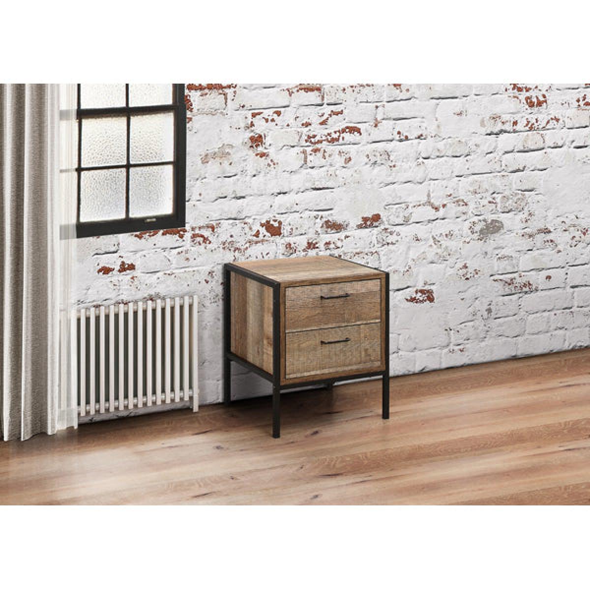 Our Urban bedroom range is perfect for adding a hint of industrial chic to any bedroom. The Urban 2 Drawer Bedside features 2 handy drawers ideal for storing away any belongings. This versatile range is crafted from a metal frame with industrial-effect detail and has a wood-effect finish. Care instructions: Wipe carefully with a soft, dry cloth.