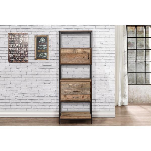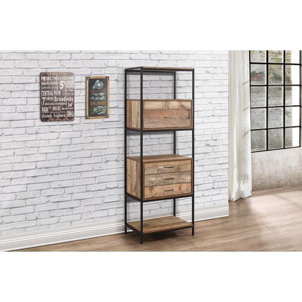 Our Urban living room range radiates industrial chic. The Urban 3 Drawer Shelving Unit provides a spacious storage solution for all books and files, featuring 3 handy drawers and one closed cabinet. Crafted from a metal frame with industrial-effect detail and features a wood-effect finish, the simple lines and subtle industrial style will give a contemporary twist to the focal point of any living room. Care instructions: Wipe carefully with a soft, dry cloth.