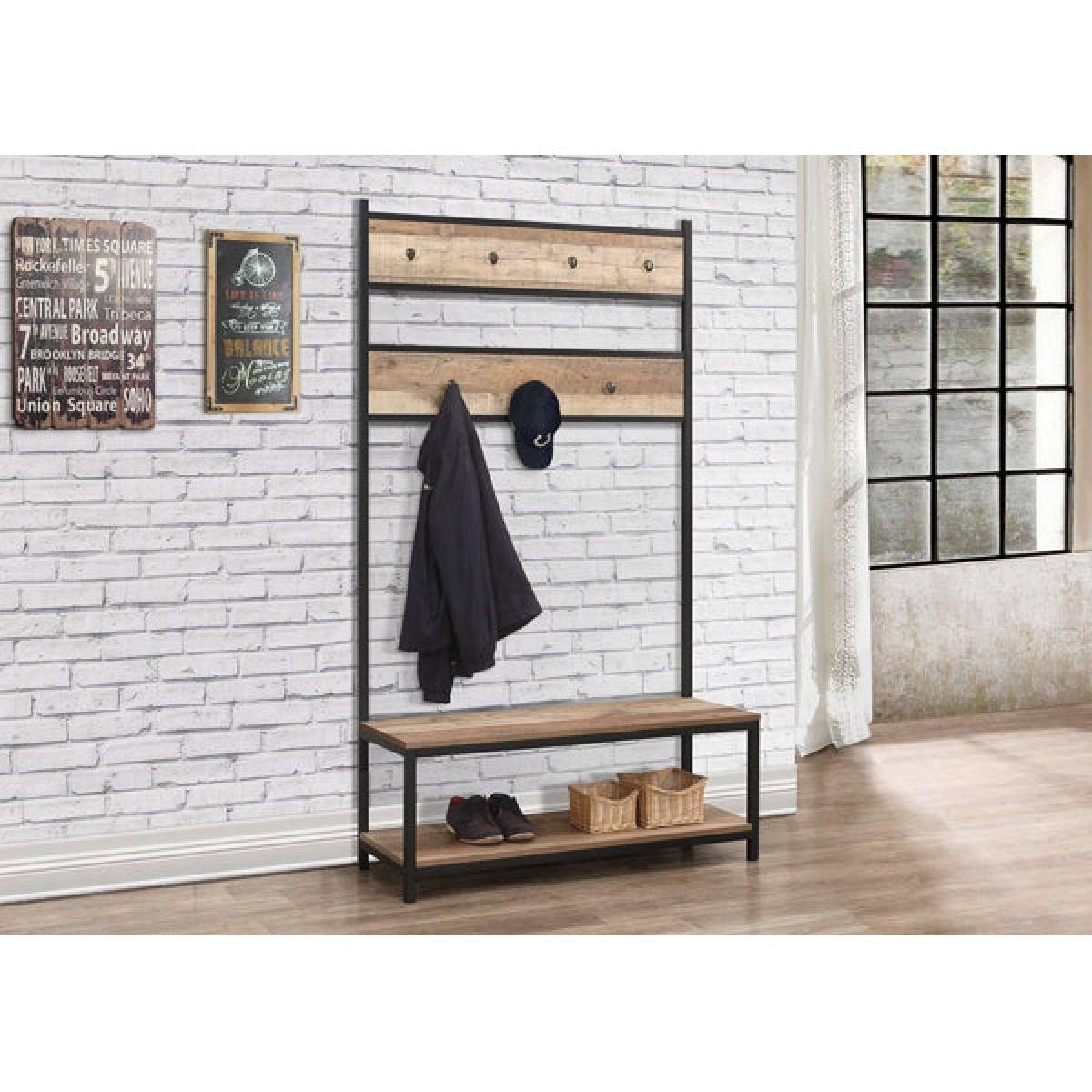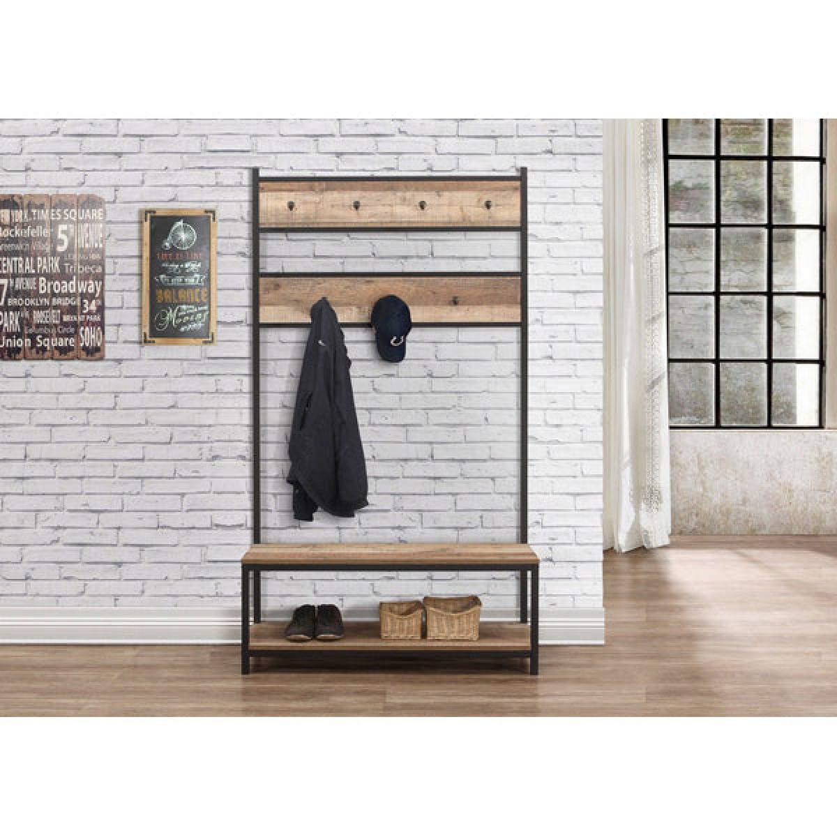 Our Urban occasional range radiates industrial chic. With plenty of storage for coats, hats and footwear, the Urban coat rack & bench features 7 hooks at two heights, a useful bench and a shoe shelf beneath. Ideally located in a hallway or porch, everything will be kept neatly close at hand for those mornings when you’re rushing out the door. Crafted from a metal frame with industrial-effect detail and features a wood-effect finish, the simple lines and subtle industrial style will give a contemporary twist to the focal point of any living room. Care instructions: Wipe carefully with a soft, dry cloth.