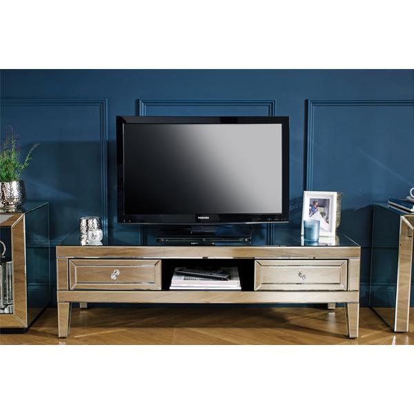The beautiful and glamorous Valencia TV cabinet will be a stylish addition to any Living room. Constructed from a MDF frame this stunning range features a mirrored finish with bevelled edges and elegant mock crystal handles. Cleaning and Care: Wipe with dry cloth.