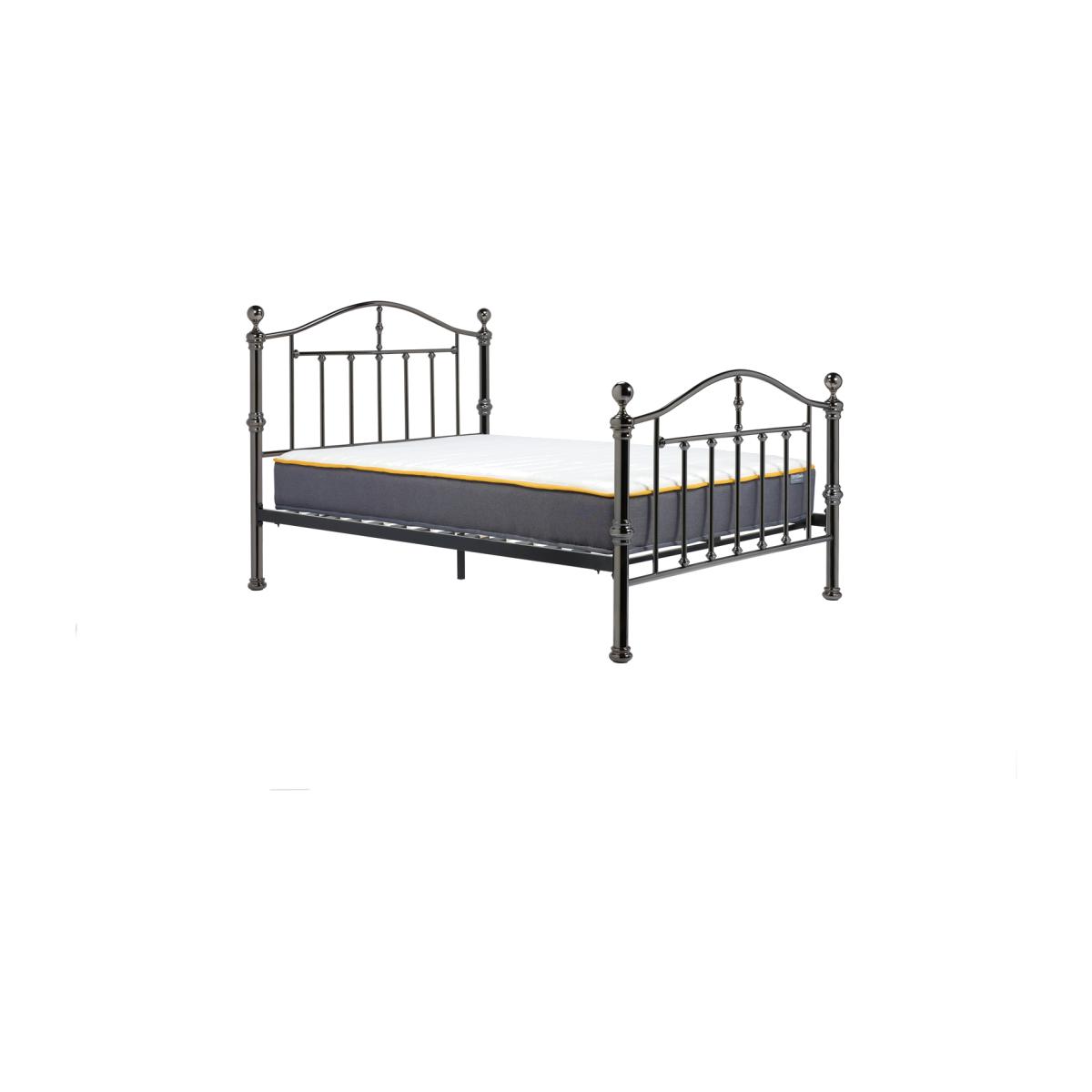 A traditional piece, the Victoria steel bed features an elegant finish that accentuates the detail in the framework. Constructed from steel, this frame is finished using an electroplating paint process and is available in black nickel. Please note that the Victoria frame has black side rails. A sprung slatted base gives a natural bounce, adjusting to where pressure is most exerted to provide greater comfort. The maximum weight load for the Victoria frame is 220 kg. Please note Birlea beds are only suitable for a UK standard size mattress. The recommended mattress height is 254 mm.