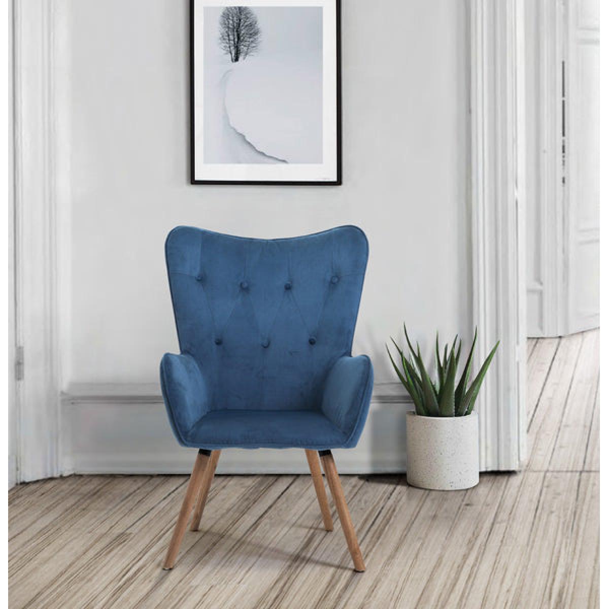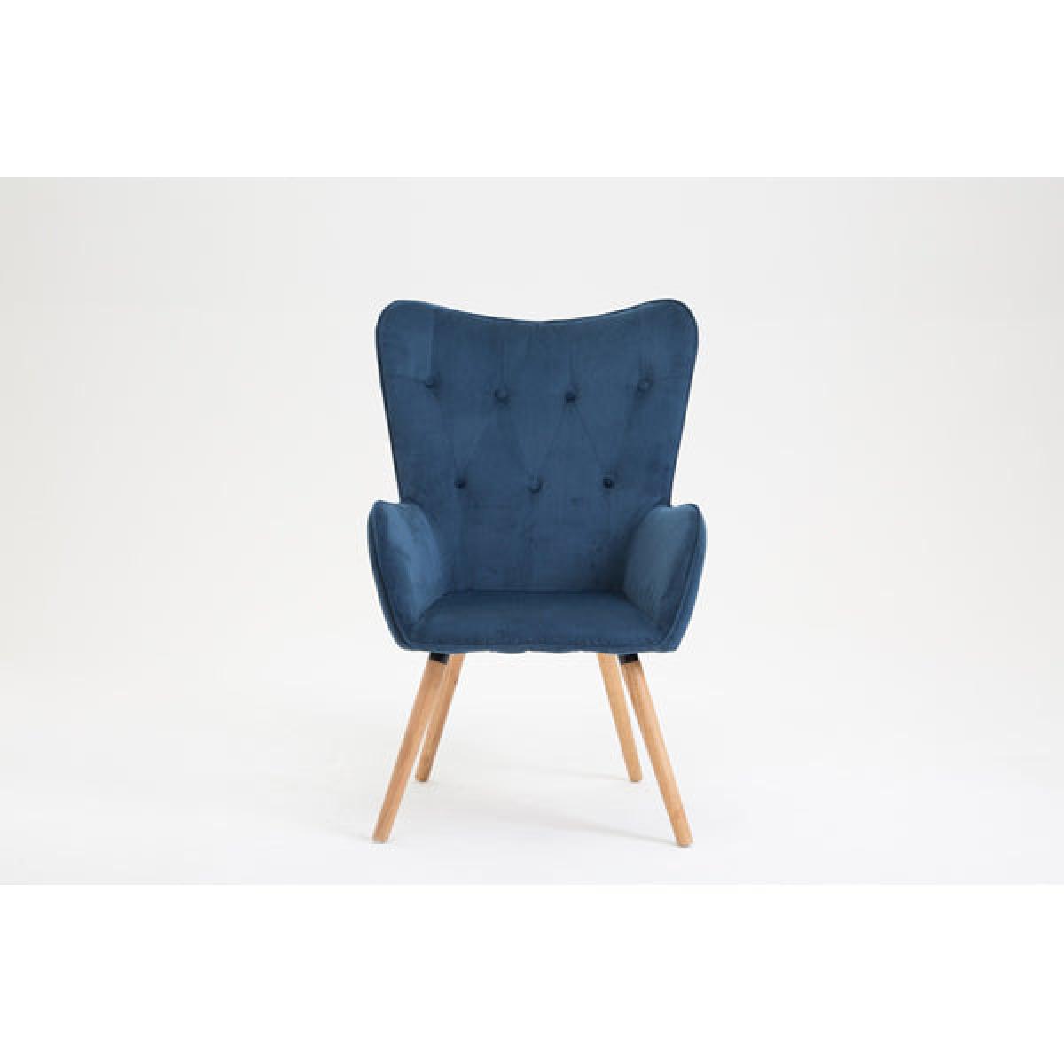 The Willow armchair is t he perfect combination of design, comfortable shape and functionality. Upholstered in 2 colours; sapphire and midnight blue this retro inspired button back armchair features light wooden legs. The Willow armchair will easily match the furniture pieces in your home. The maximum weight load for this chair is 120 kg.