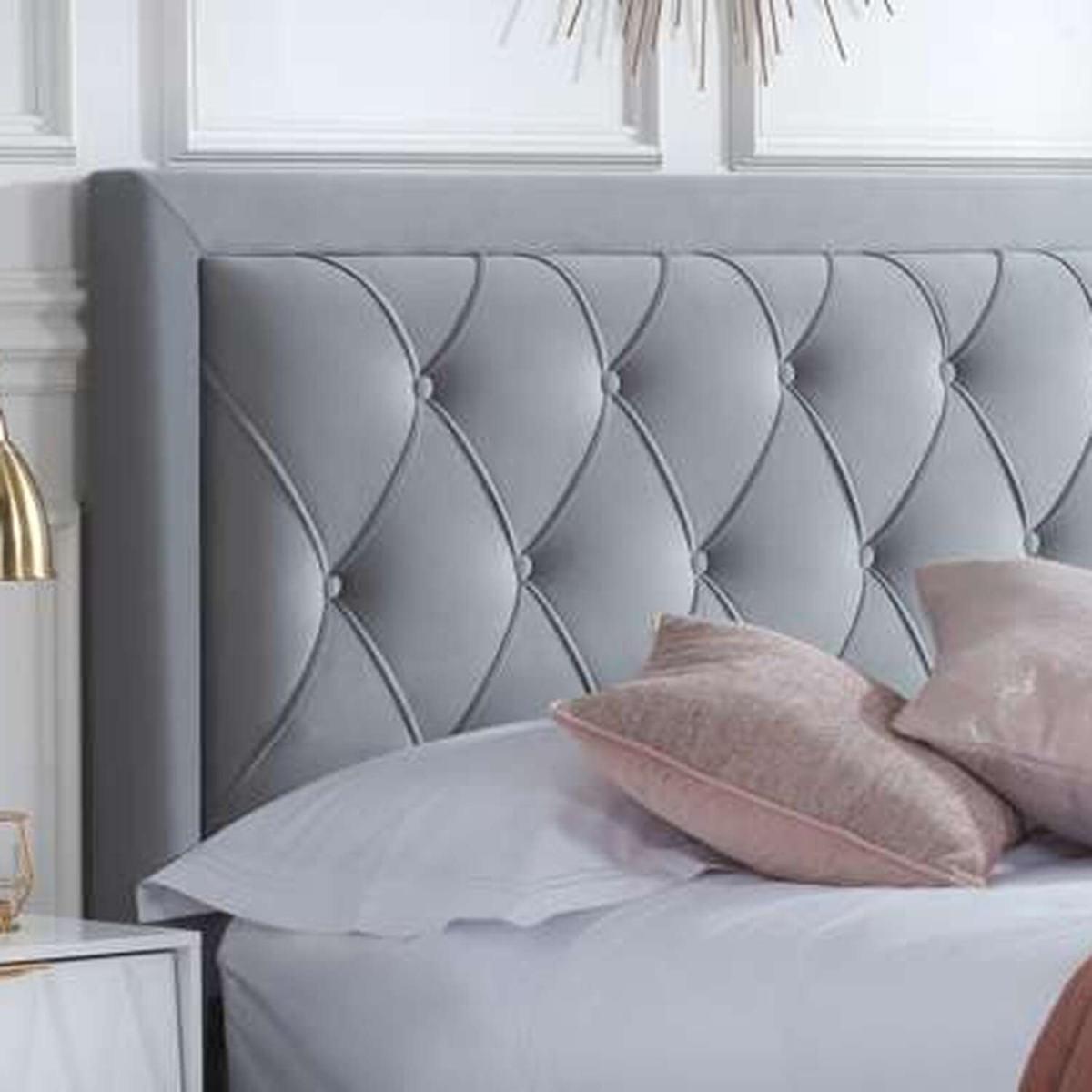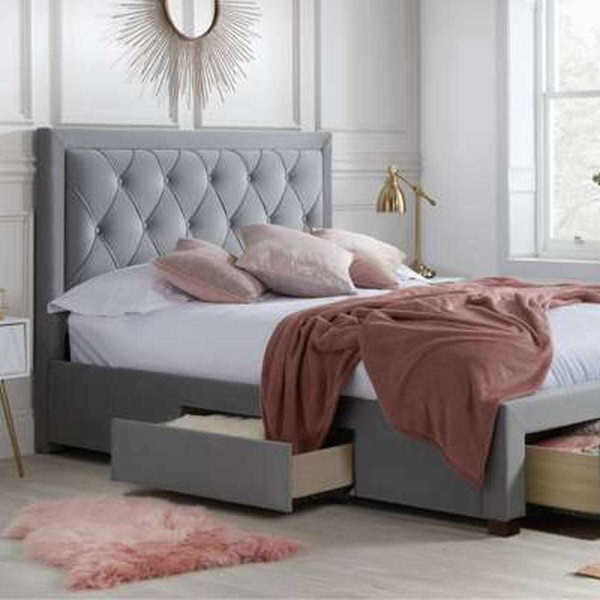 This elegant bed frame comes with a striking diamond tufted headboard that will compliment any bedroom. Upholstered in a grey luxurious fabric and features handy storage drawers to stowaway away your belongings. The Woodbury bed frame has a solid slatted base provides firmer support and allows air to circulate beneath the mattress. The maximum weight load for the 4'6 frame is 300 kg, the 5' frame is 400 kg, and the 6' frame is 450 kg. Please note Birlea beds are only suitable for a UK standard size mattress and the recommended maximum mattress height is 305 mm.